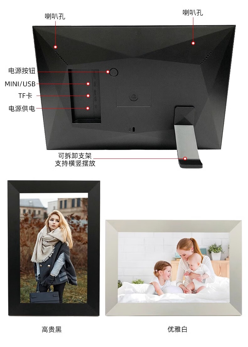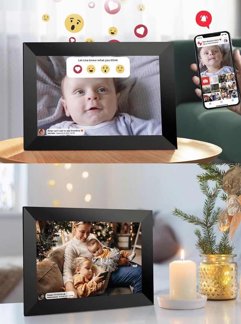 Cadre photo en nuage avec écran tactile intelligent haute définition de 10 pouces, album photo électronique, réseau sans fil, transmission à distance par téléphone portable + mémoire blanche 32 Go de 15,6 pouces