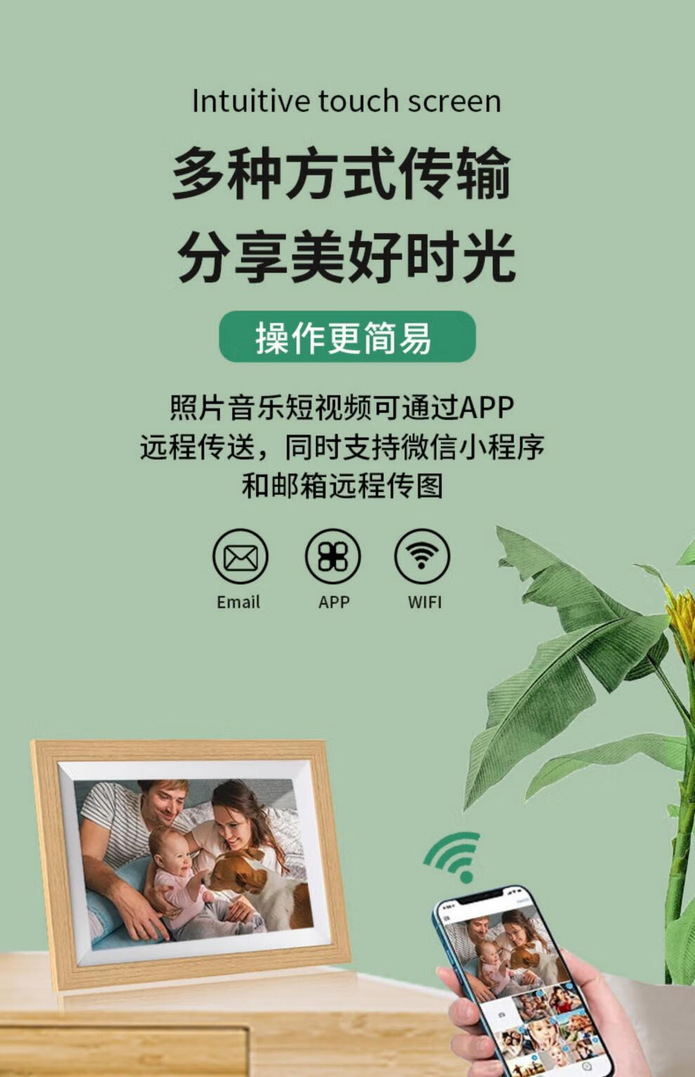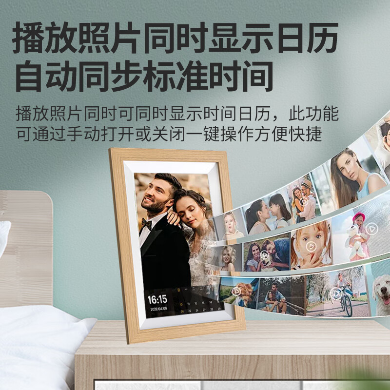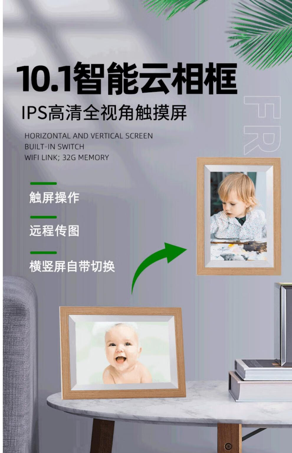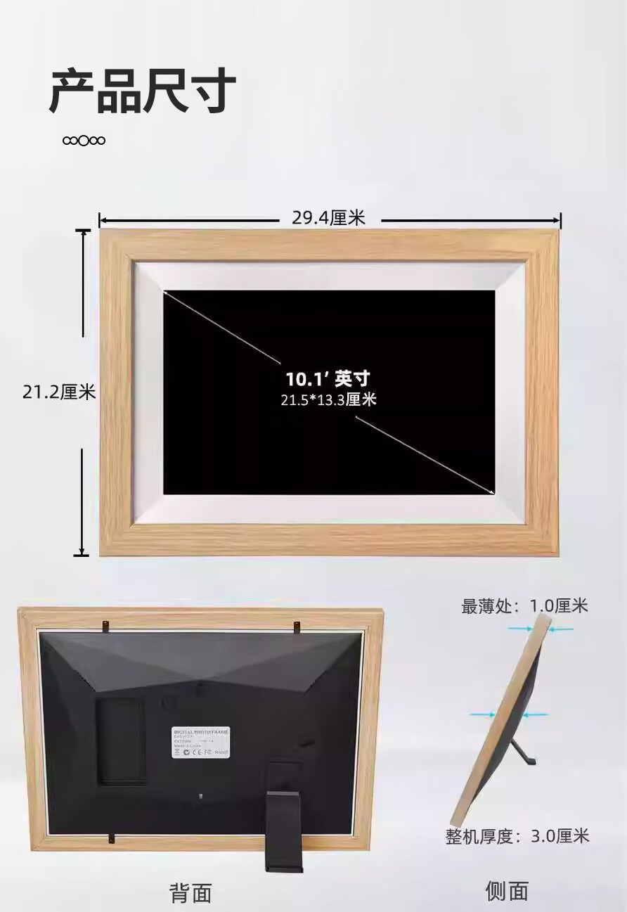 Álbum de fotos electrónico Reproductor de video HD inteligente Marco de madera Imagen del hogar Pantalla táctil Marco de fotos horizontal y vertical 10 Blanco * 10 pulgadas * 64G