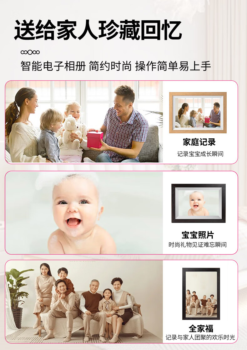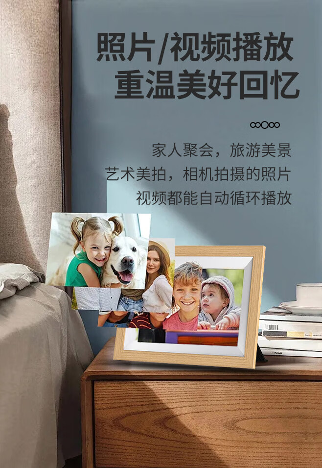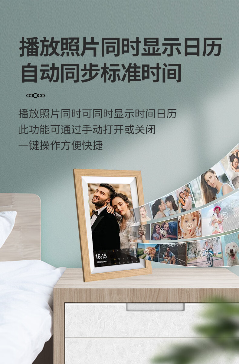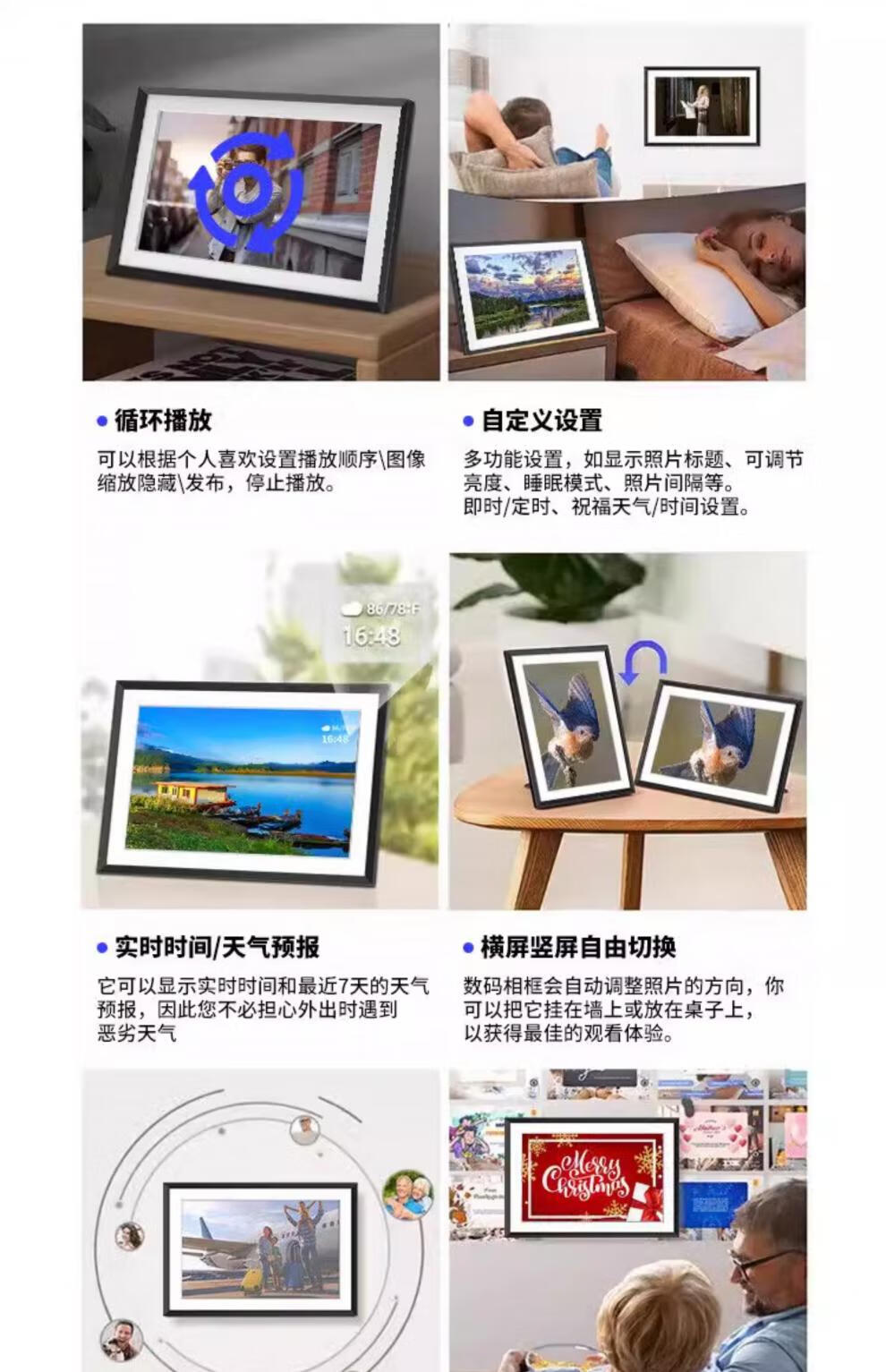 Álbum de fotos electrónico Reproductor de video HD inteligente Marco de madera Imagen del hogar Pantalla táctil Marco de fotos horizontal y vertical 10 Blanco * 10 pulgadas * 64G
