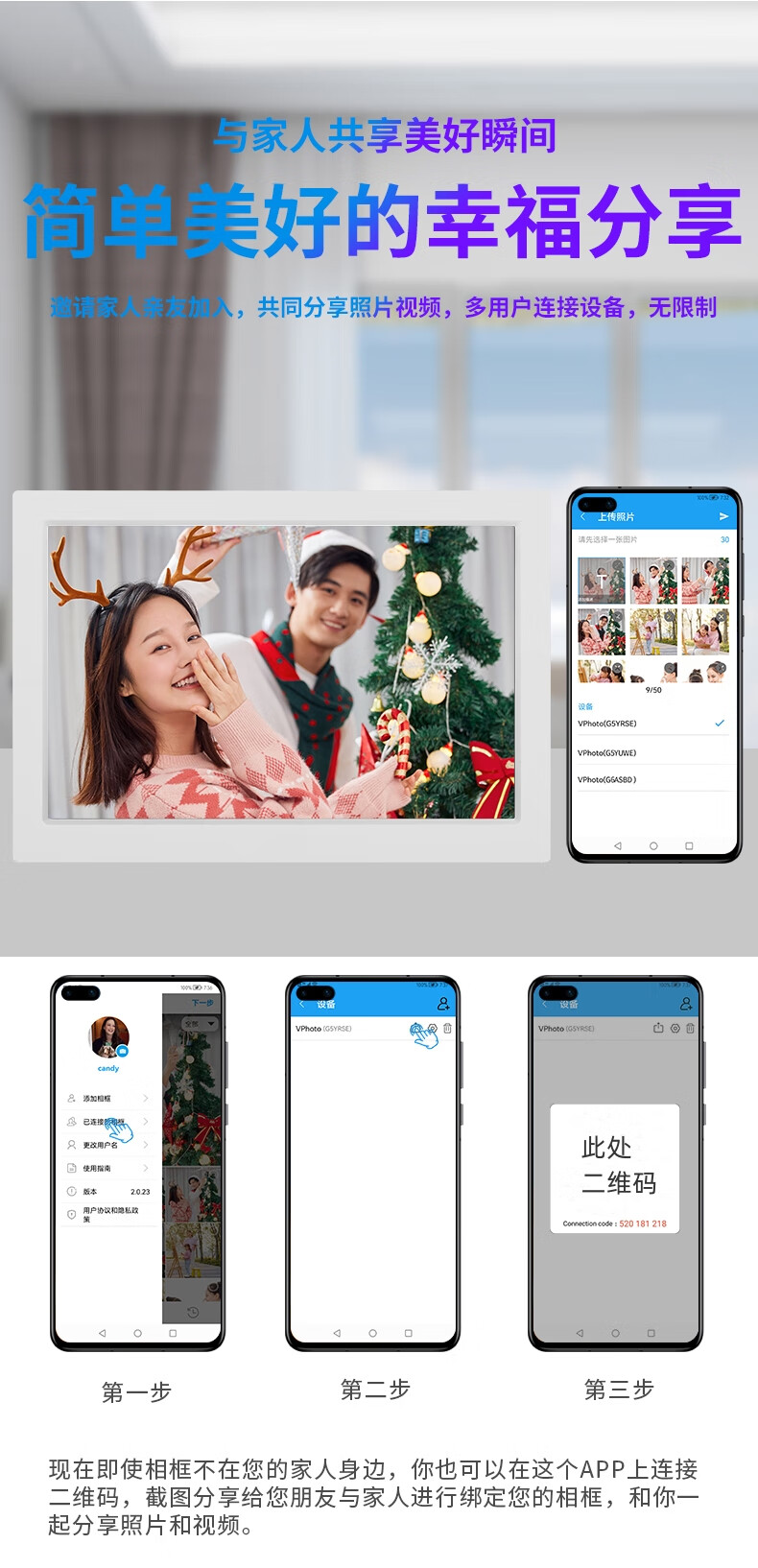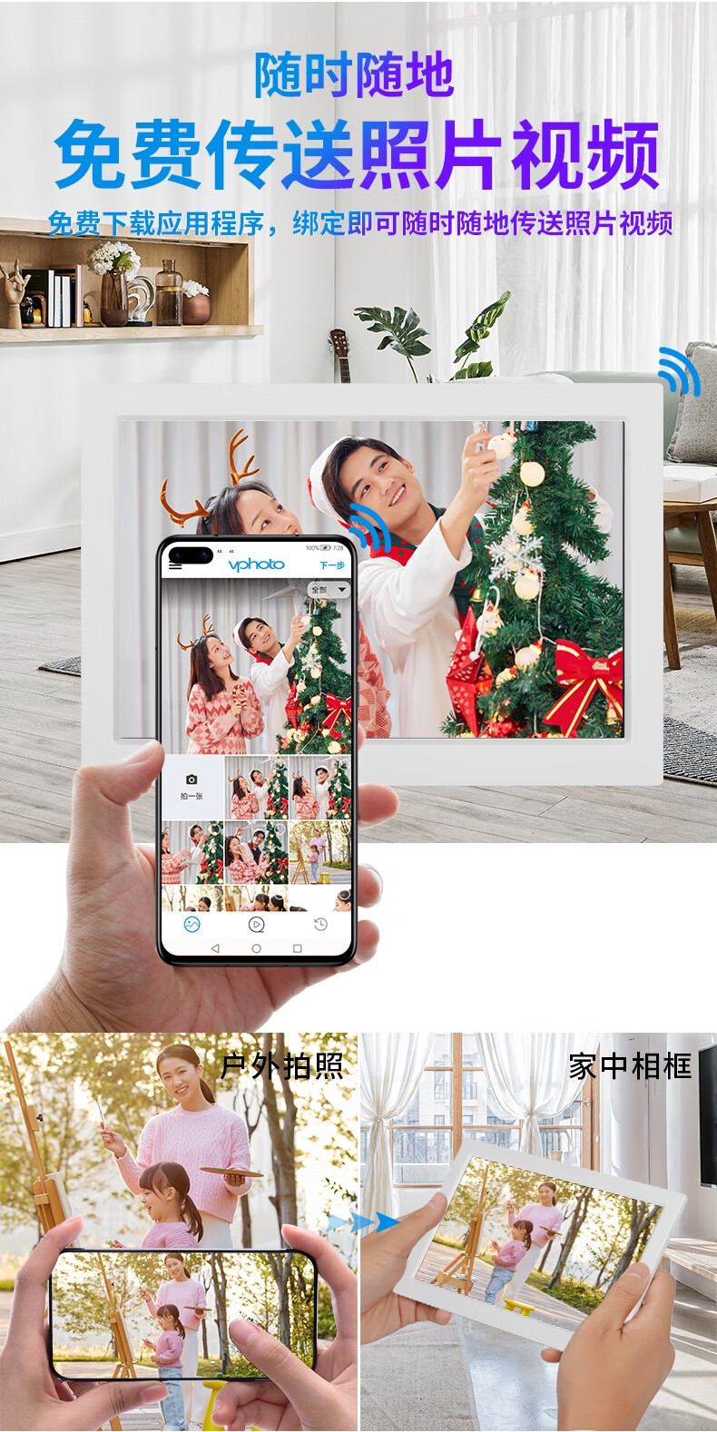Cadre photo intelligent WiFi Cloud Album photo électronique Lecteur HD APP Transmission de photos Rotation horizontale et verticale de l'écran peut ajouter un cadre en bois Cadre photo cloud de 10 pouces 64G + Cadre en bois couleur journal