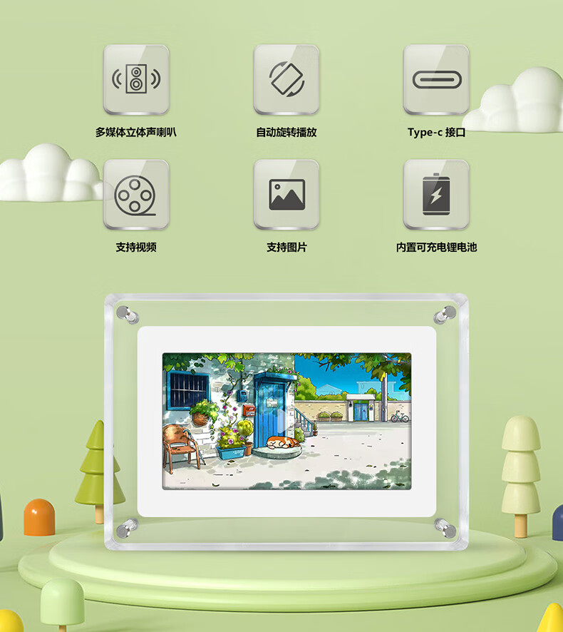 Cadeau acrylique album photo électronique affichage HD cadre photo lecteur vidéo souvenir 7 pouces 8G mémoire avec batterie