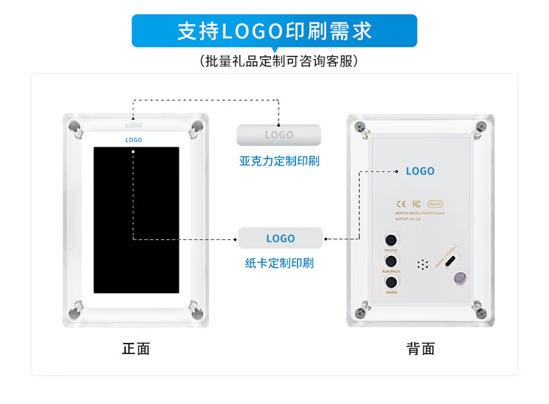 OWNEW acrylic high-definition digital photo frame electronic photo album display photo video player advertising screen high-end business gift souvenir 7-inch 8G memory rechargeable
