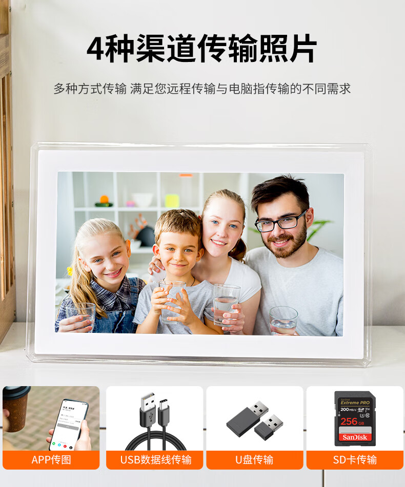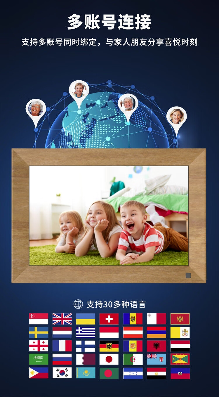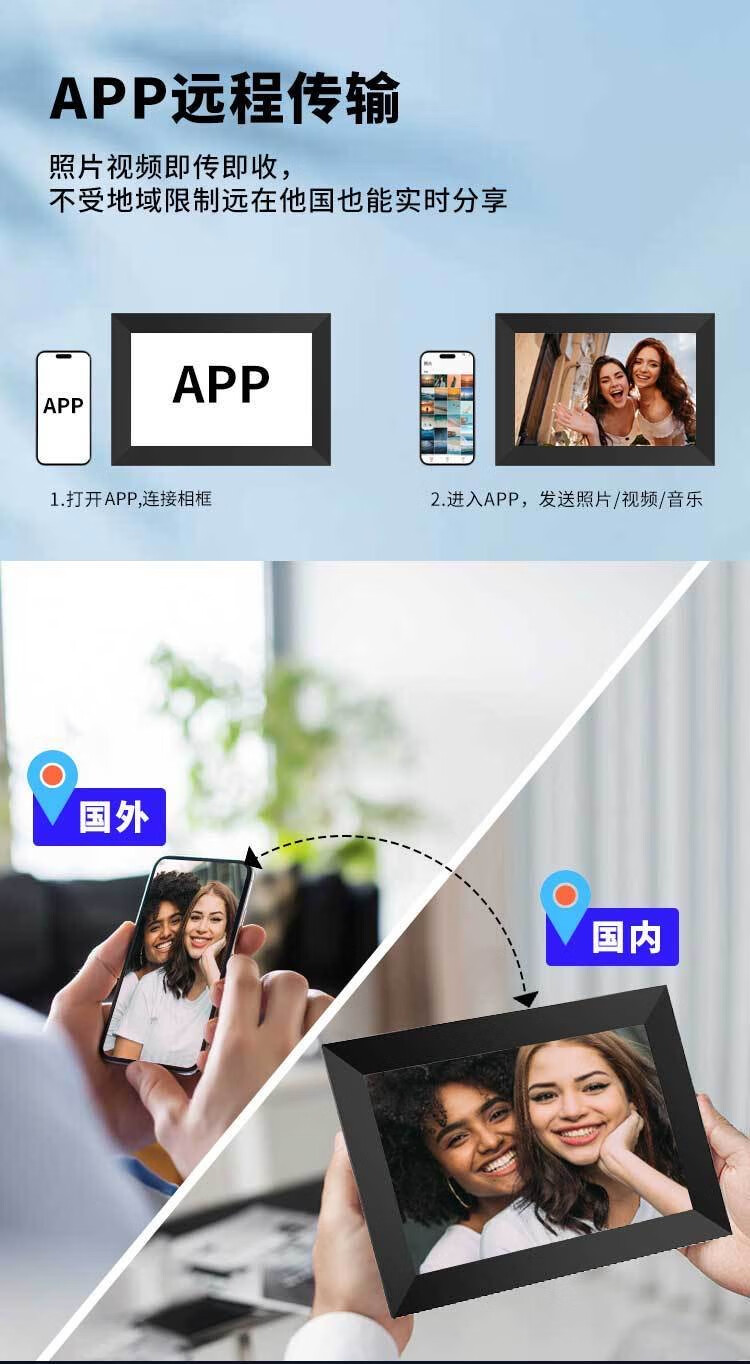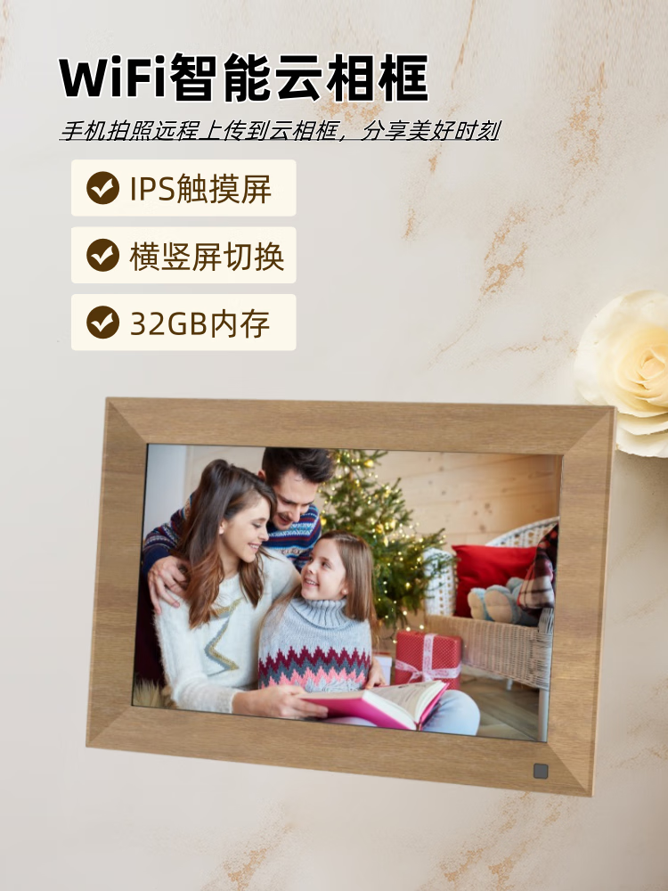 Marco de fotos electrónico inteligente IPS HD de 10 pulgadas, álbum de fotos, aplicación móvil wifi, transmisión remota de fotos y reproducción de vídeo, memoria negra de 32G de 10 pulgadas