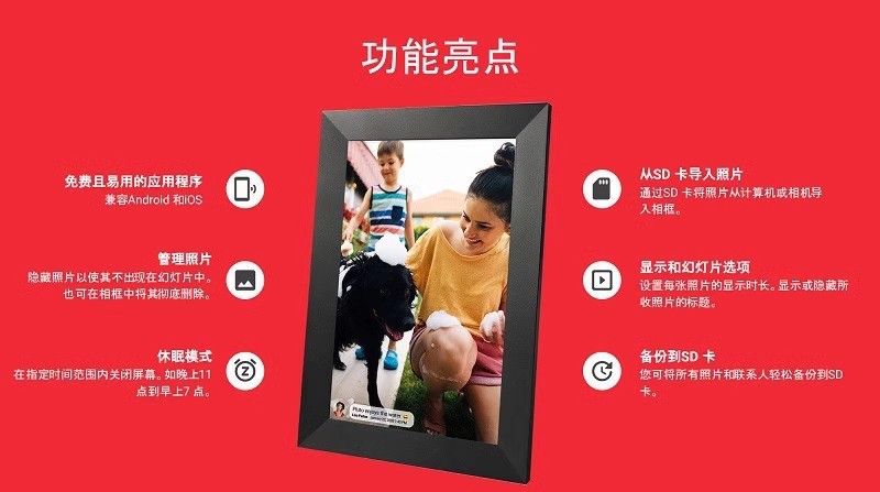 Marco de fotos en la nube con pantalla táctil inteligente de alta definición de 10 pulgadas, álbum de fotos electrónico, red inalámbrica, transmisión remota del teléfono móvil + memoria negra de 32G de 10 pulgadas