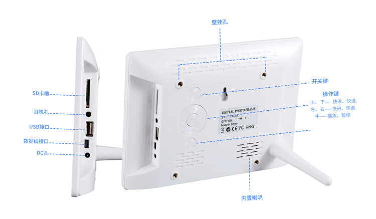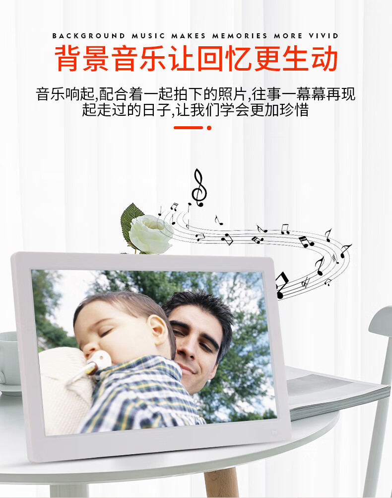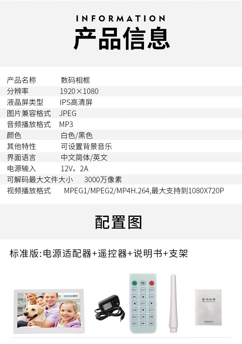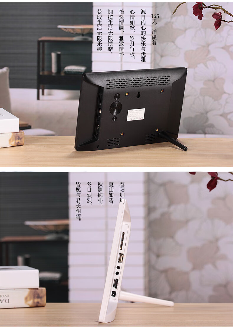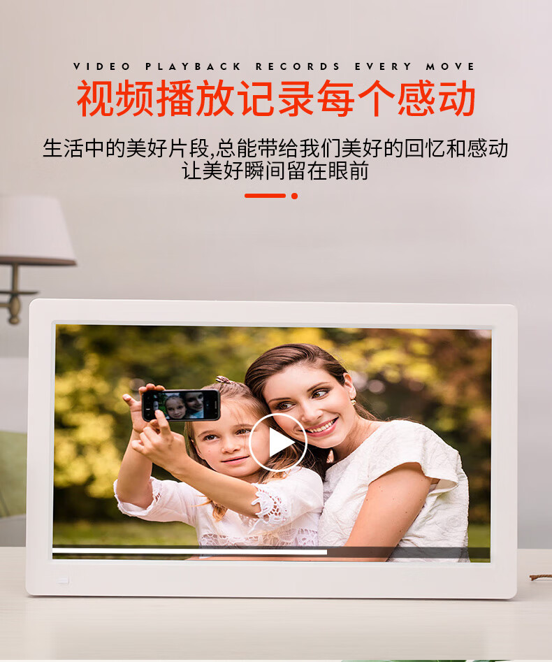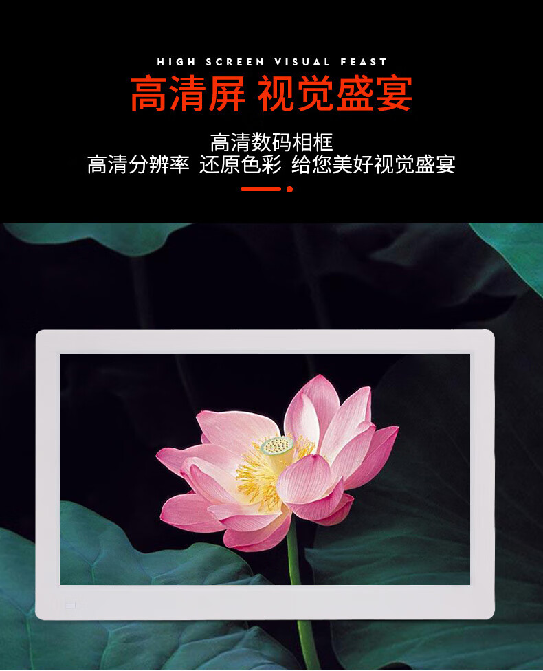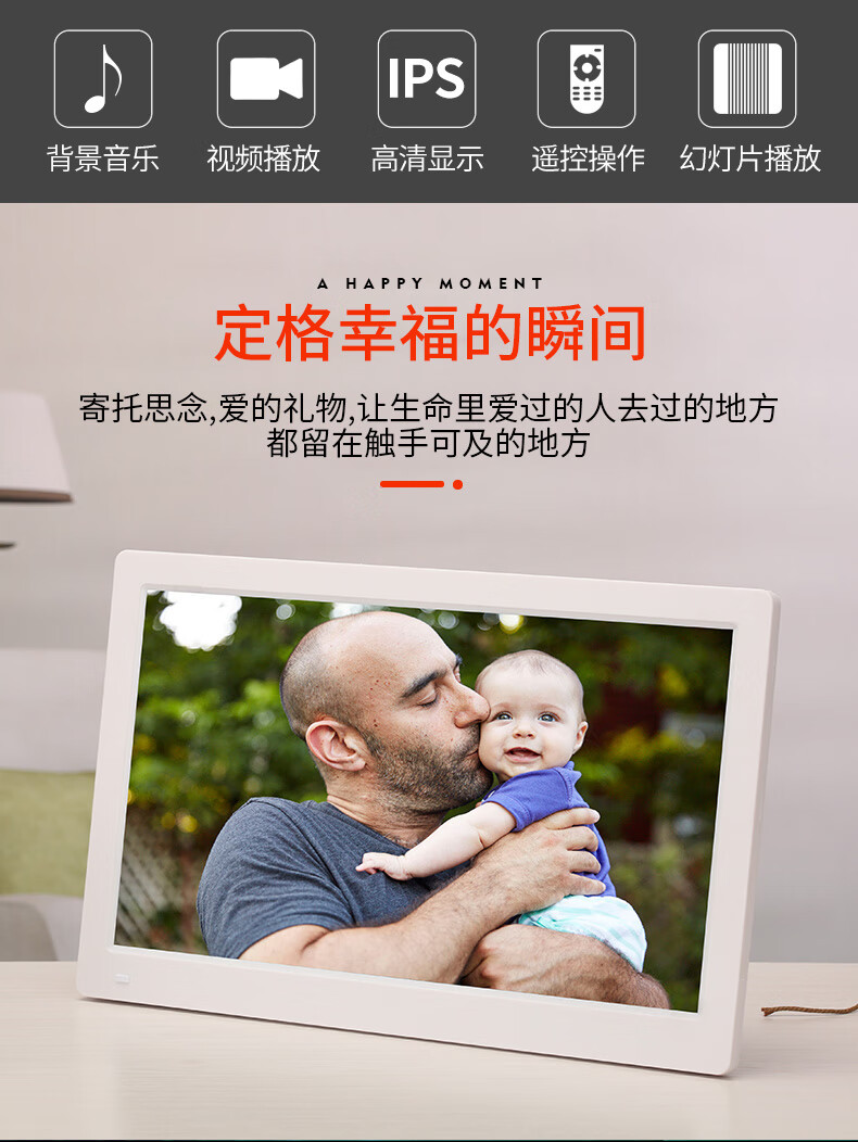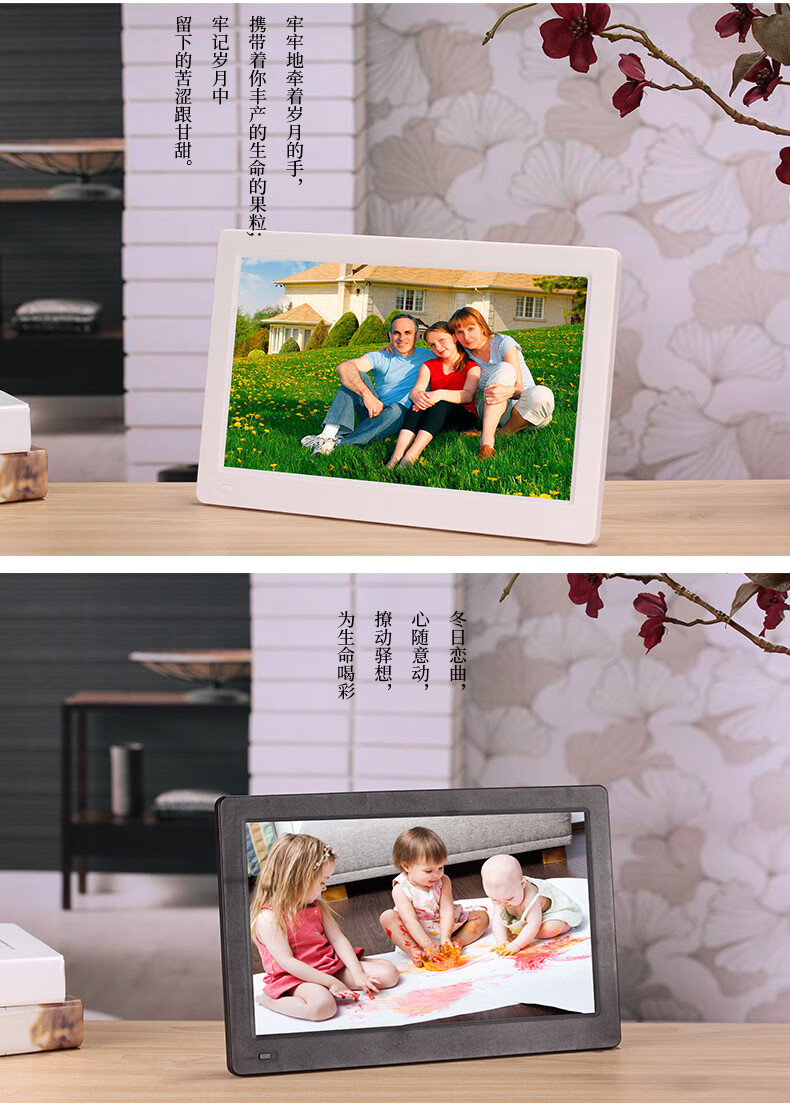 Der hochauflösende Bilderrahmen mit 8/10/13/15-Zoll-IPS-Bildschirm unterstützt die HDMI-Smart-Electronic-Fotoalbum-100P-Werbemaschine. Es wird standardmäßig ohne HDMI geliefert und ist standardmäßig auf Weiß und Schwarz eingestellt.