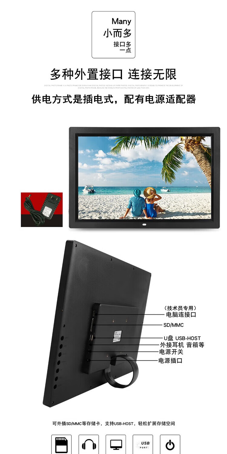 Marco de fotos de álbum de fotos electrónico 7/8/10/12/15/17/19/22 pulgadas reproductor de fotos de alta definición audiovisual en color 7 pulgadas de alta definición +32G