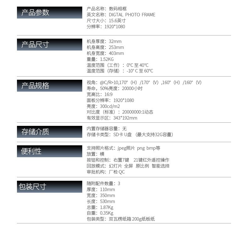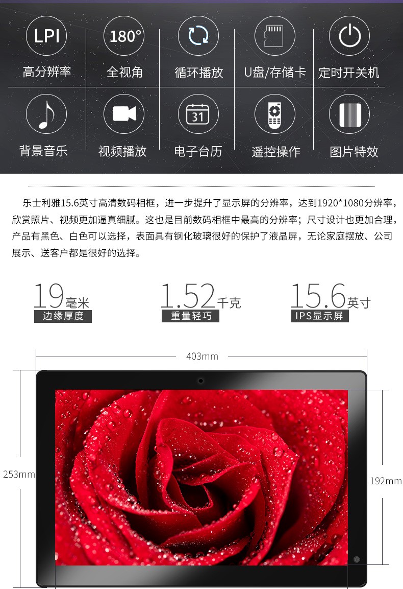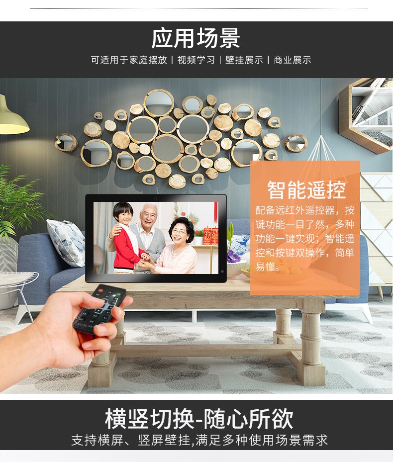 LSLY LSLY 15,6-Zoll-hochauflösender digitaler HD-Fotorahmen mit Vollansicht, elektronischer Fotoalbumständer für zu Hause, an der Wand montierter elektronischer Fotorahmen, 15,6-Zoll-Spiegel aus schwarzem gehärtetem Glas, kostenloses 32-G-USB-Flash-Laufwerk + Wandplatine
