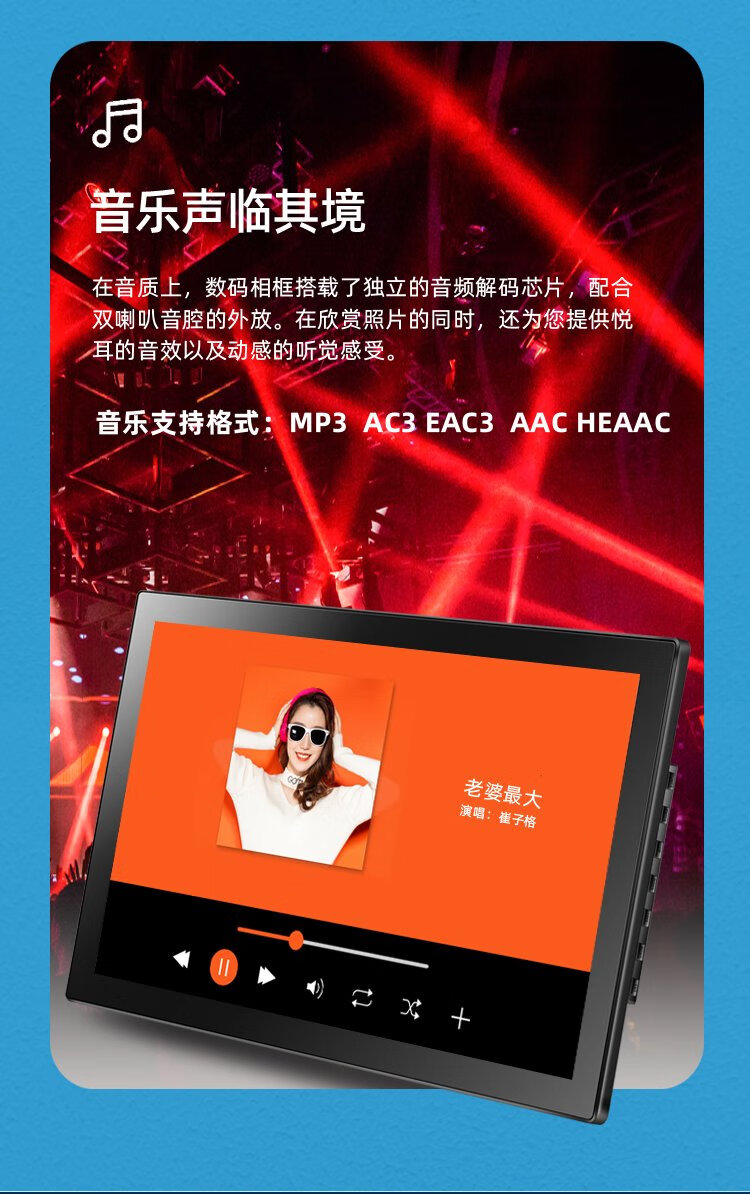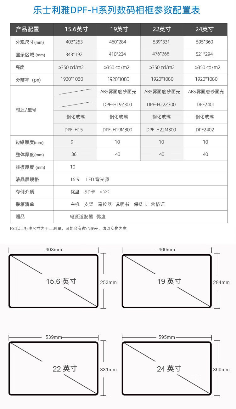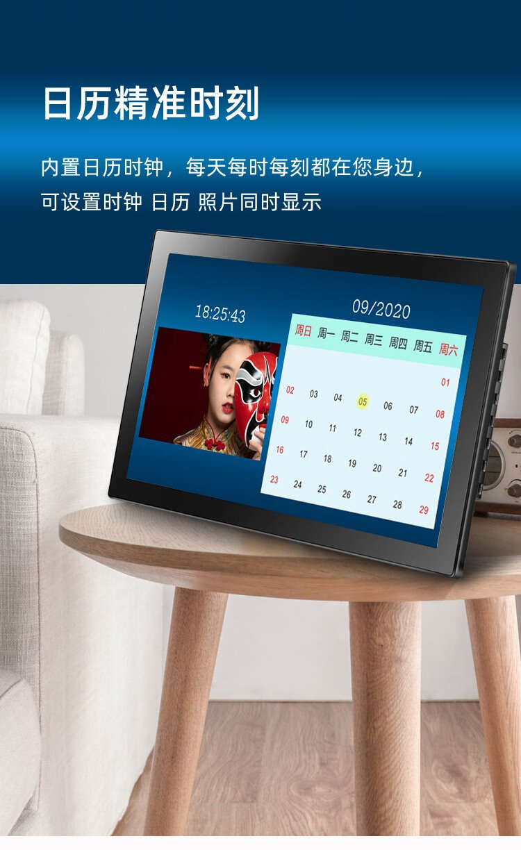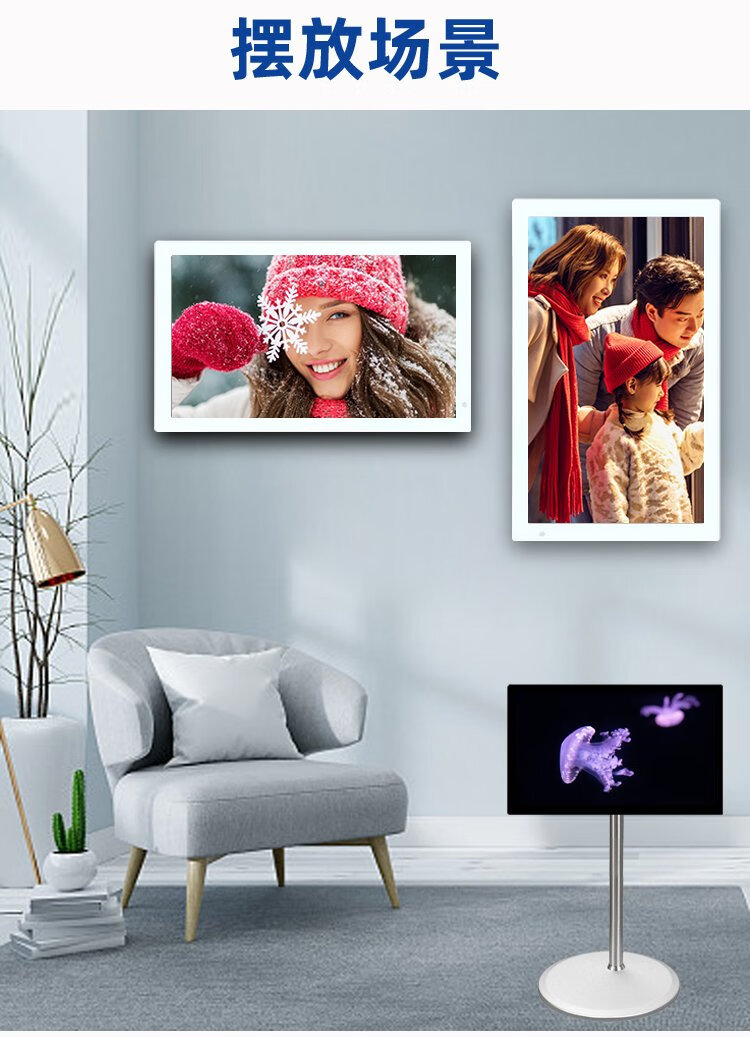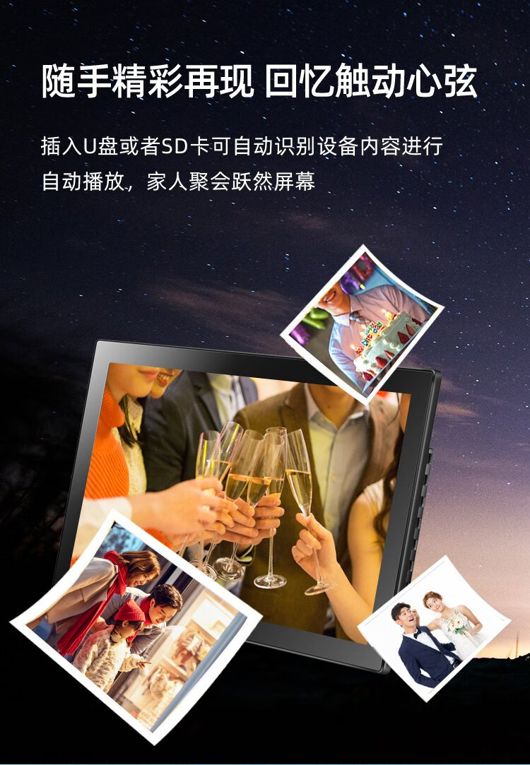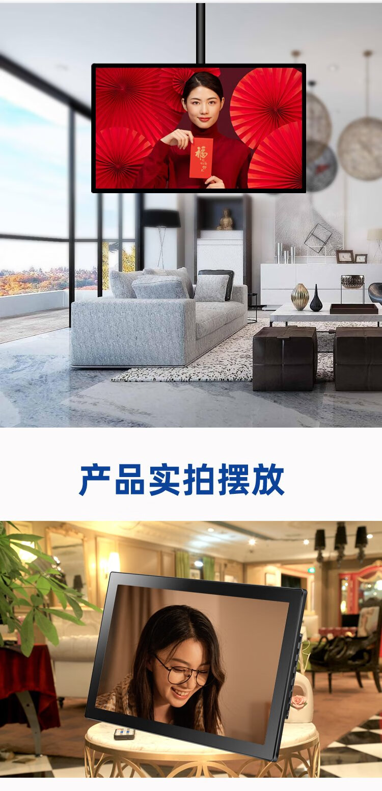 LSLY 19-inch full-view digital photo frame, electronic photo album, high-definition display, 1080P video, remote control commercial display, 19-inch black tempered glass mirror, free 32GU disk + wall-mounted plate