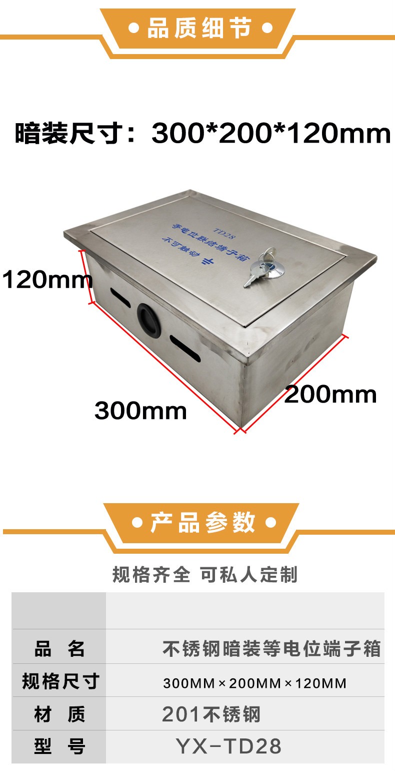 Stainless steel general equipotential bonding terminal box concealed TD28 general equipotential MEB lightning protection grounding box equipotential terminal box surface-mounted empty box