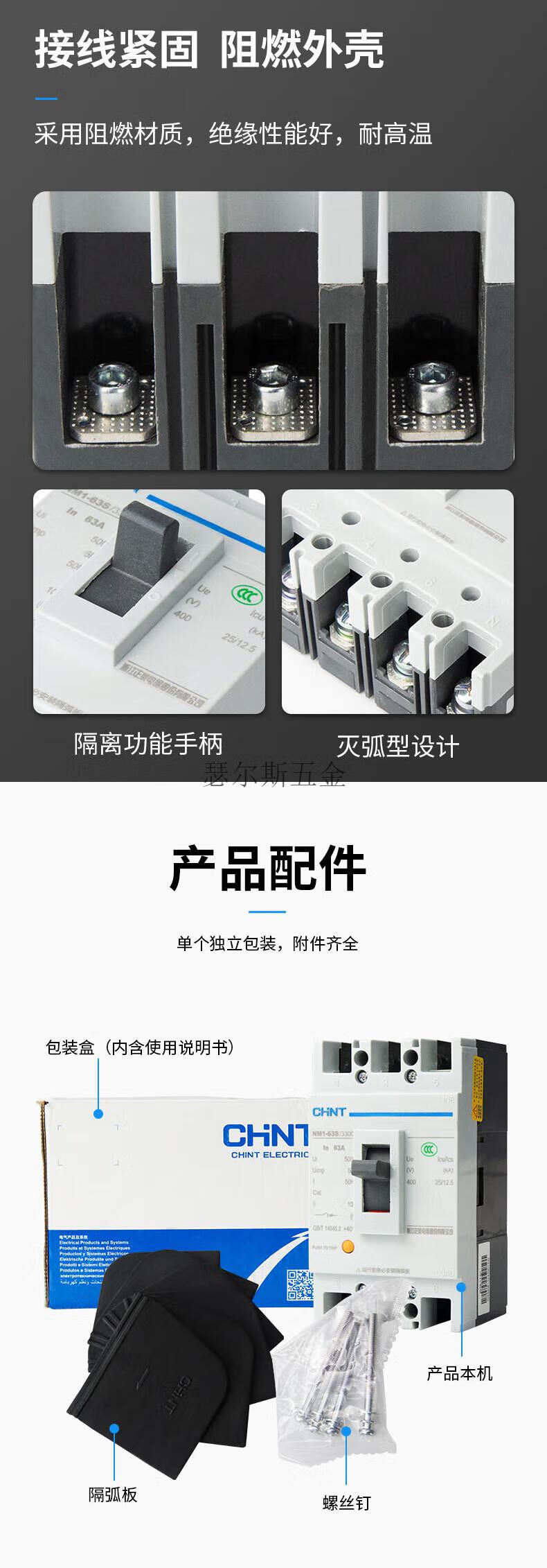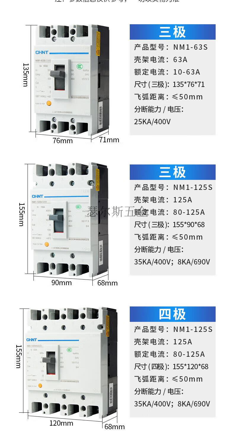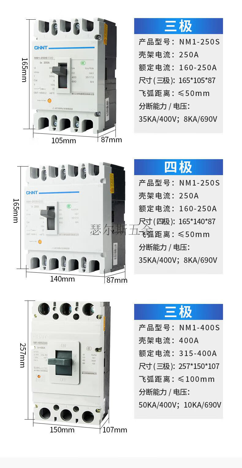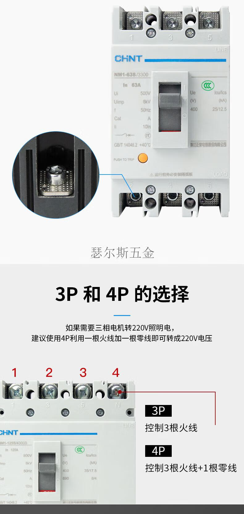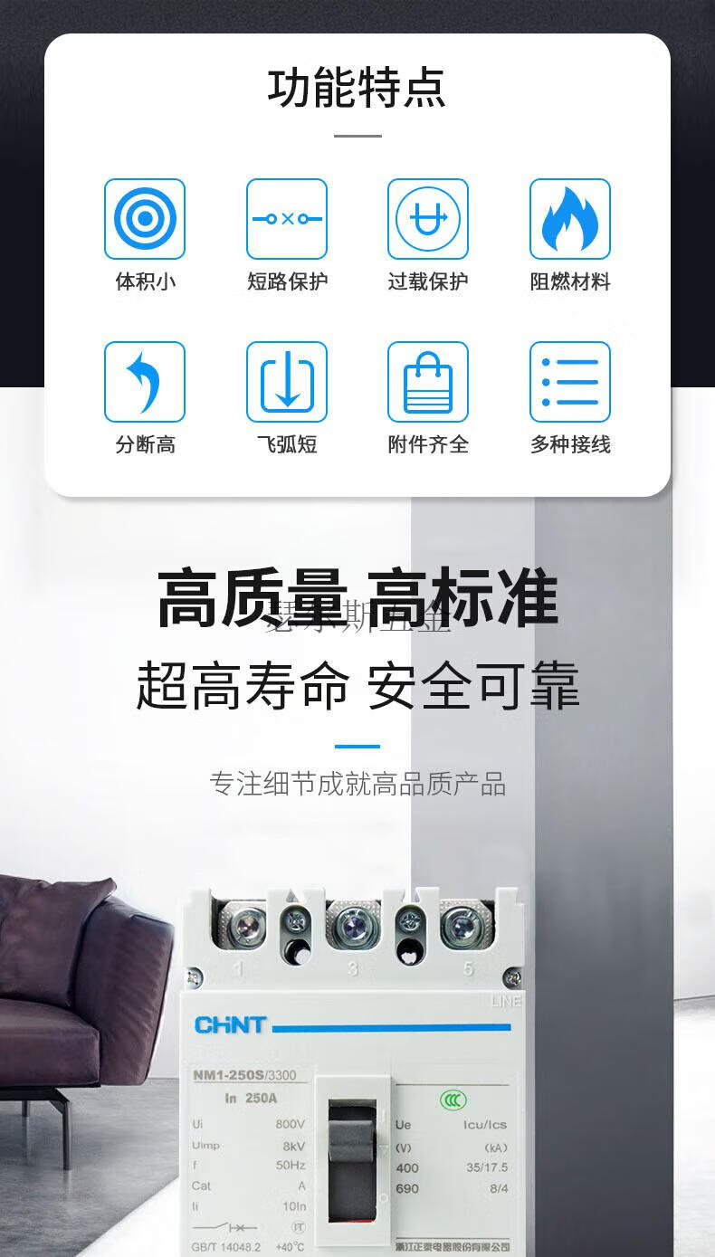 Chint (CHNT) Chint NM1 disyuntor de caja de plástico 100A caja de plástico trifásico de cuatro cables 160A200A380v interruptor de aire 125A 4p