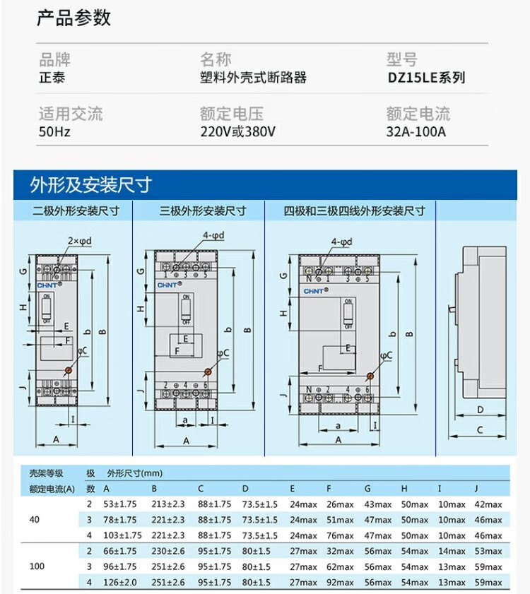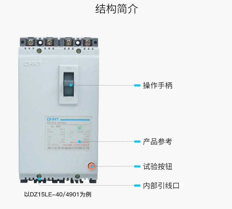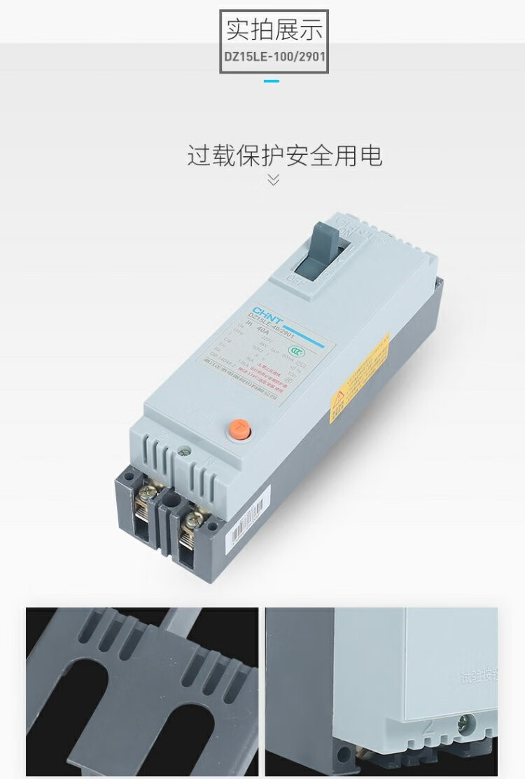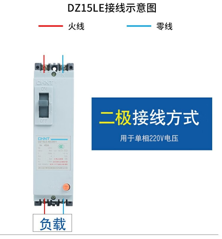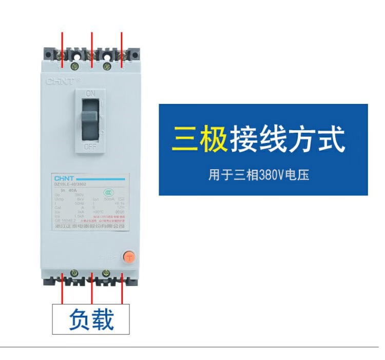 Chint (CHNT) Chint three-phase four-wire leakage circuit breaker DZ15LE-1004901 plastic case leakage protection circuit breaker 100a 40A 2P