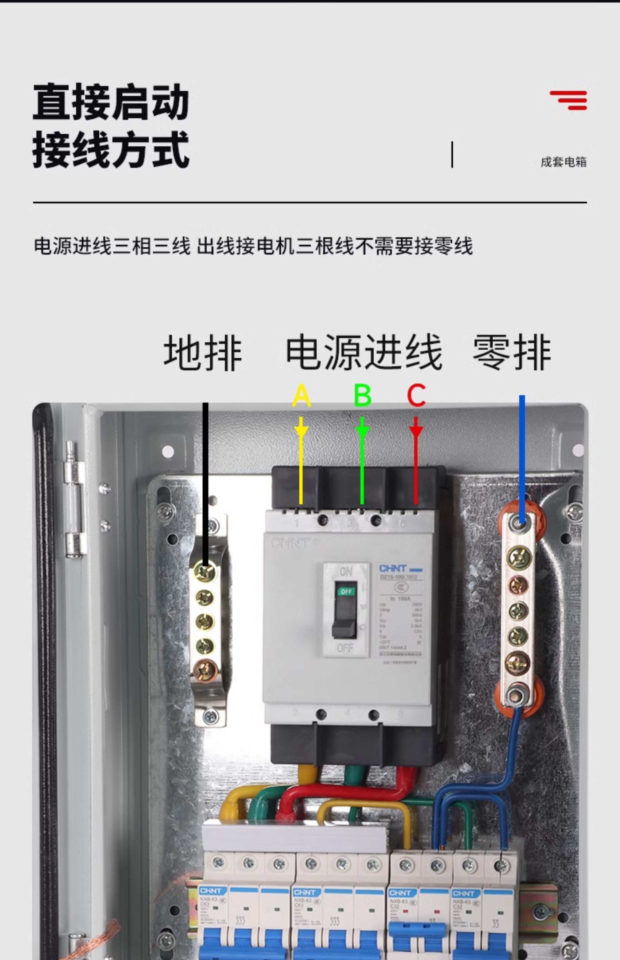Caja de distribución Chint sitio de construcción trifásico de cuatro cables gabinete de distribución de tres niveles de energía de bajo voltaje personalizado conjunto completo de configuración de caja de control electrónico terminada tres