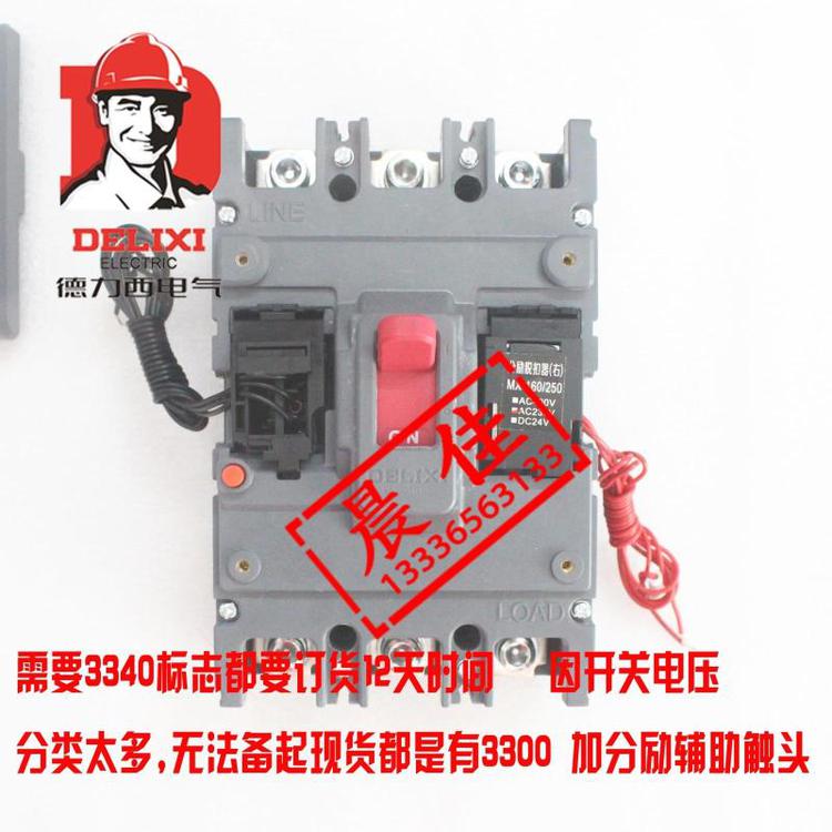 Delixi plastic case circuit breaker fire protection shunt trip auxiliary CDM3S 250A 3340 125A 2 50A 220V auxiliary 3P