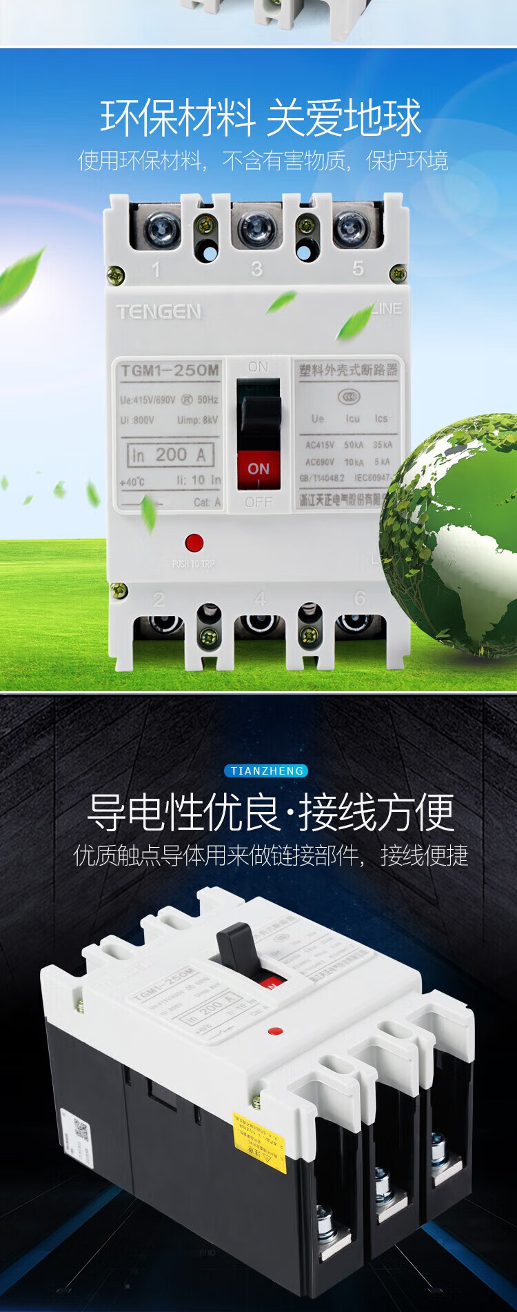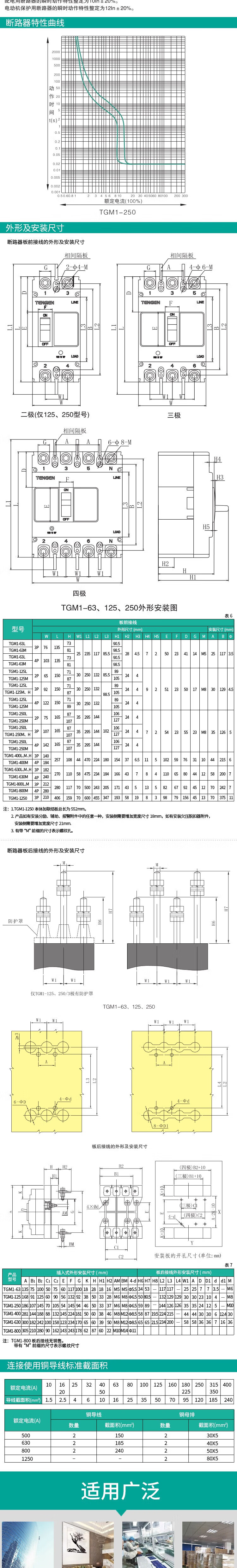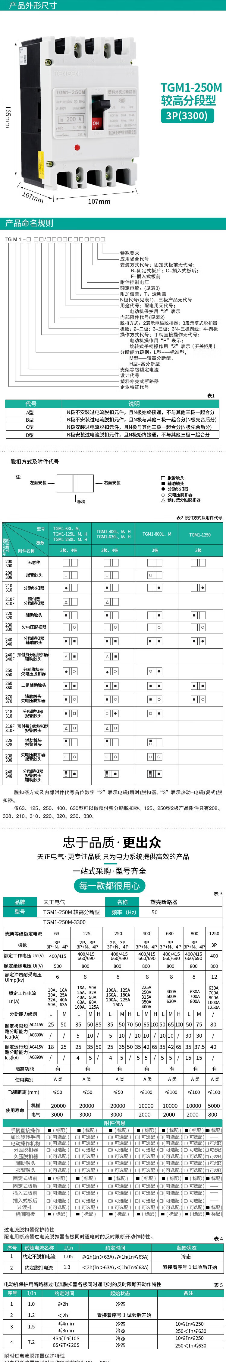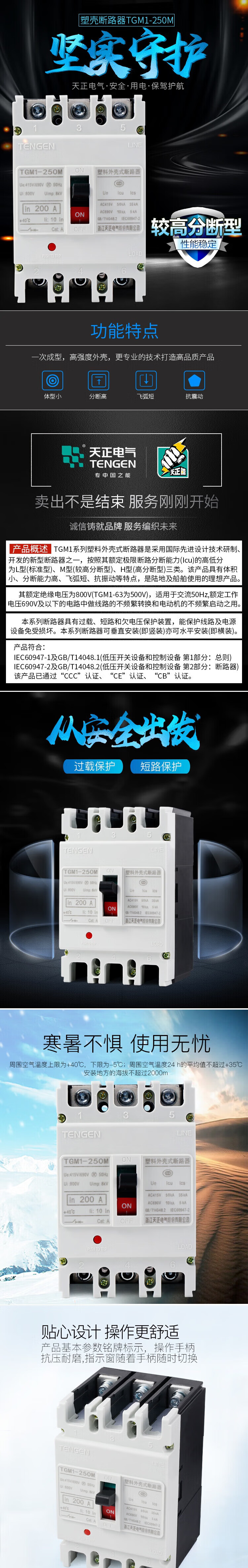 El interruptor disyuntor de caja moldeada SMS CV 2-250M/3300 tiene una capacidad de interrupción de cortocircuito de límite superior de 50 KA TGM1-250M TGM1-250M/3300(3P) 250A