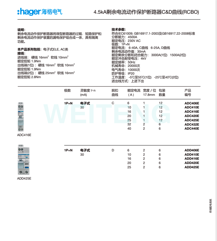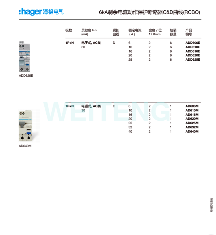Hager hagerA062E leakage switch C16A single-phase household lighting A063E socket protector C20AA062E A063Ex20A 2P