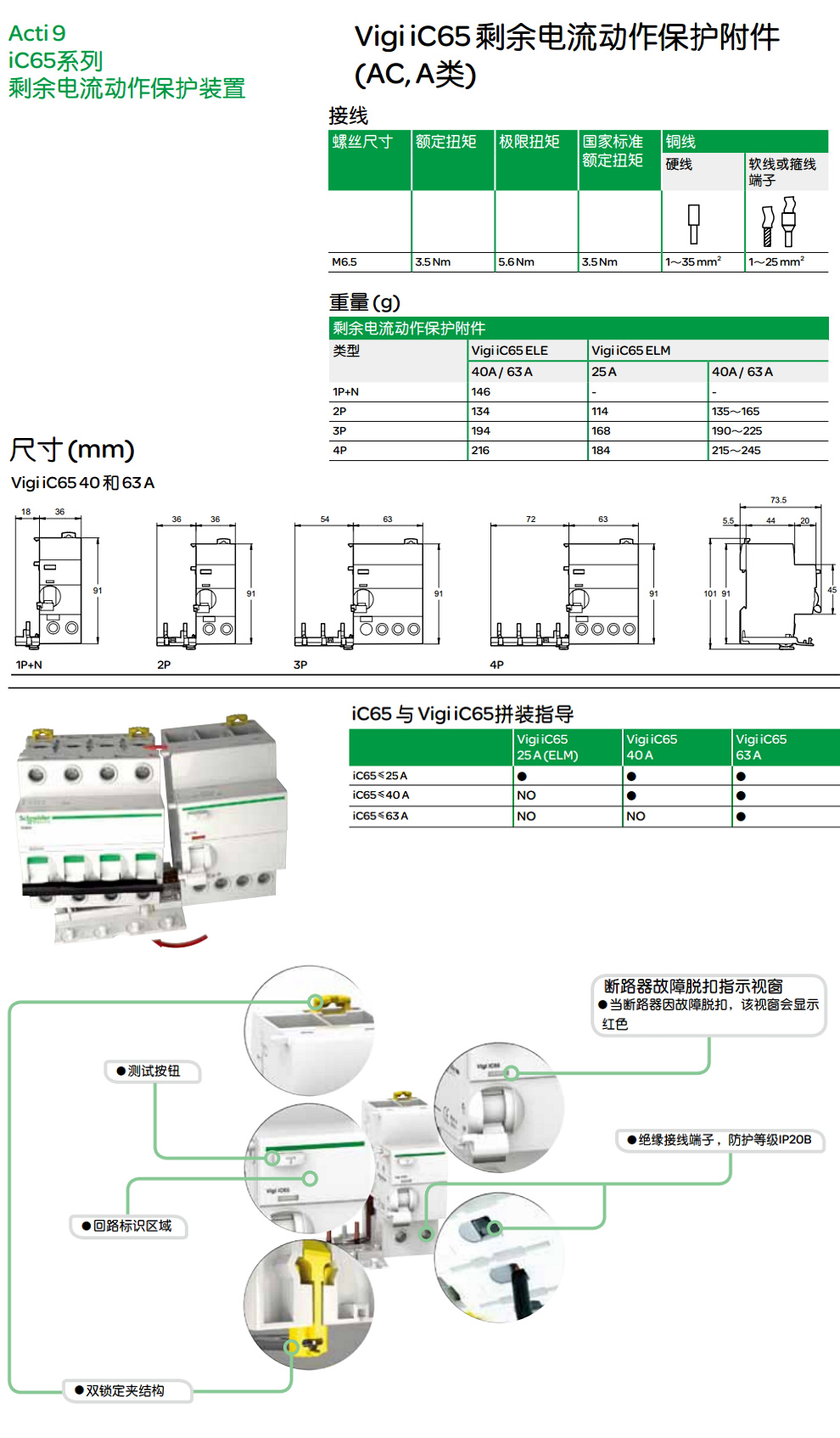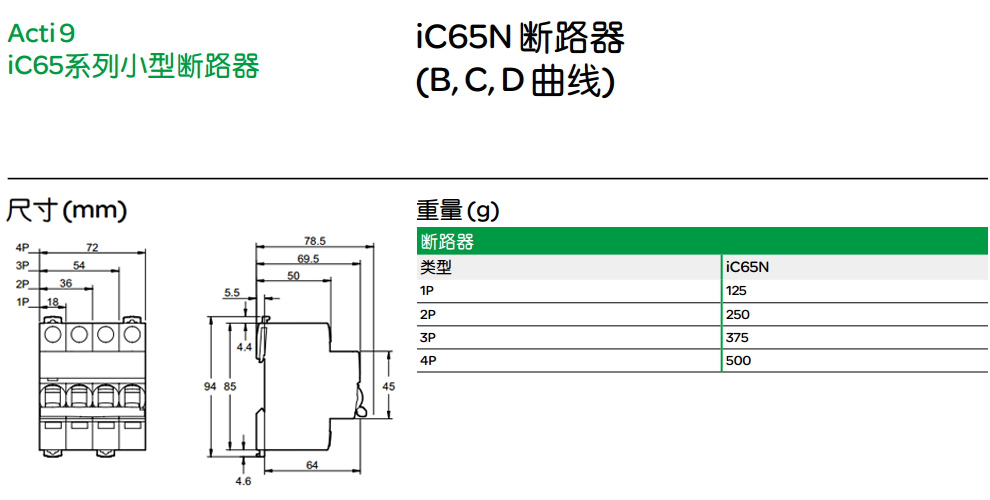 施耐德电气(Schneider Electric)漏电保护器 断路器 4相4线 iC65N Vigi ELE 30mA 4P  D63A