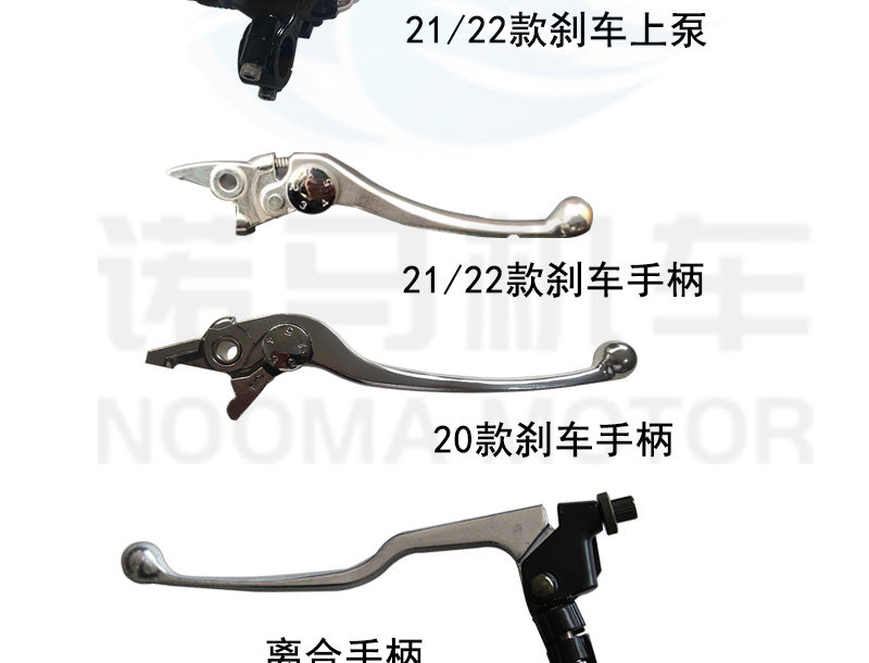 Sort by color Steering column,One direction handle (21/22 model),Uplink board,Set lock assembly,Foot brake assembly,Gear shift assembly,20 models of shock absorption,21/22 models shock absorption,Brake pump for 21/22 models,20 ABS version brake handles,21/22 brake handle,One clutch handle,steering grip,direction balance weight,One foot rest behind,Two pairs of front brake pads,One pair of rear brake pads,One front left brake disc,Exhaust pipe anti-scalding cover 1,Rear section of exhaust pipe,Front section of exhaust pipe,headlight bracket,One front right ABS brake disc,One rear ABS brake disc
