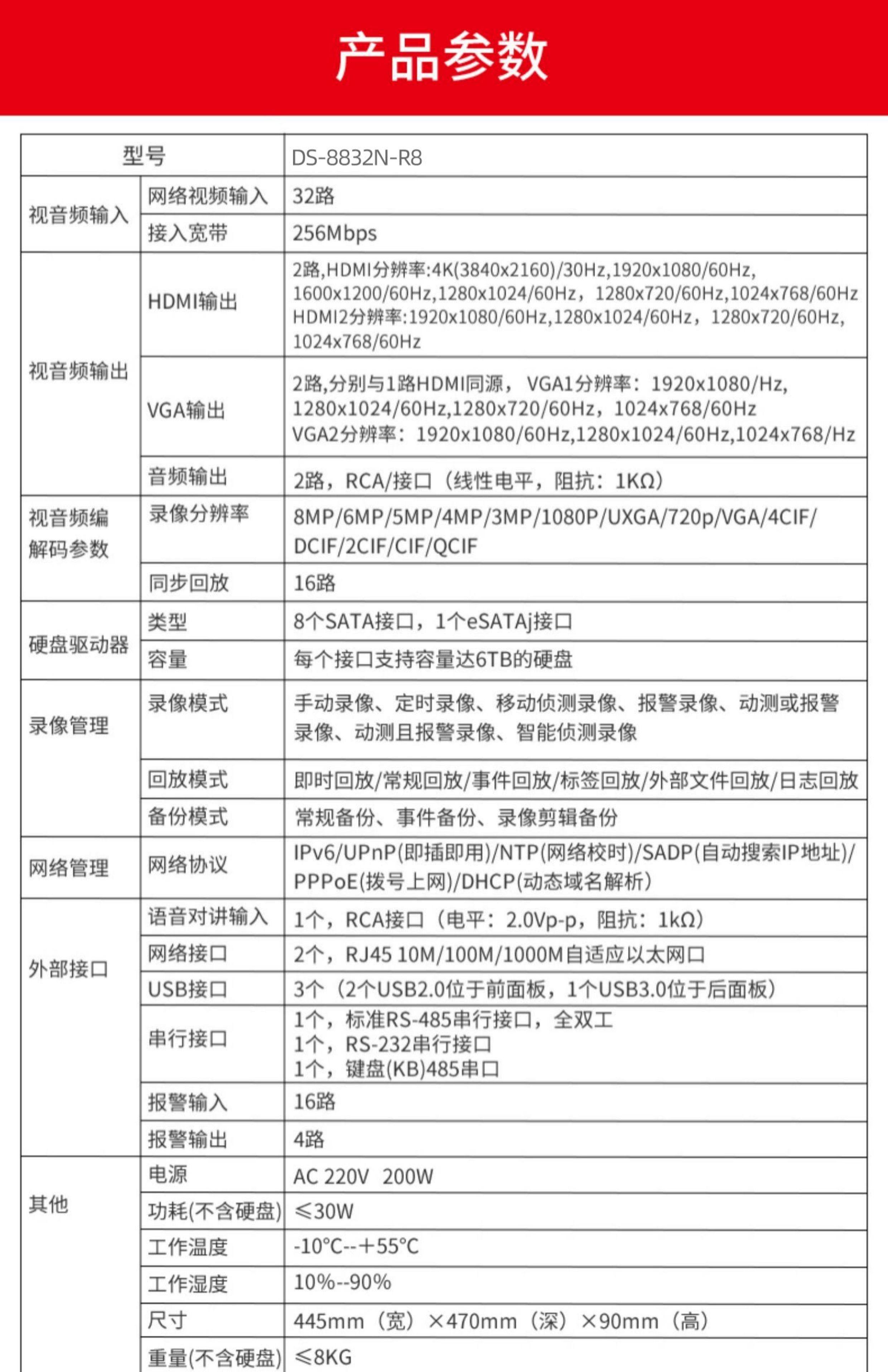Hikvision Network Dvr 16/32/64 Channel 8-Bay 4K Surveillance Host 8832R8/8864R8