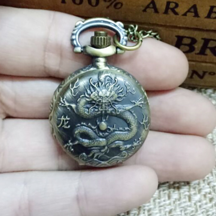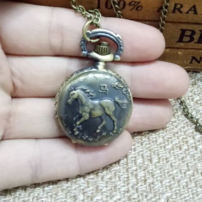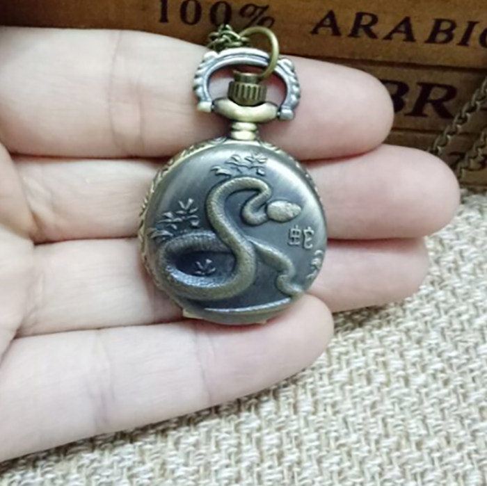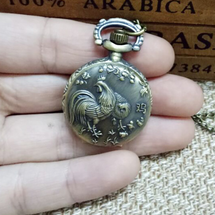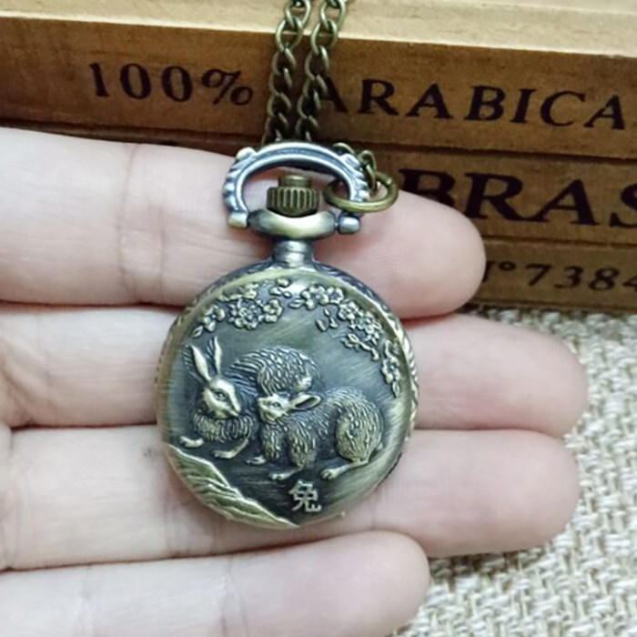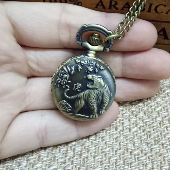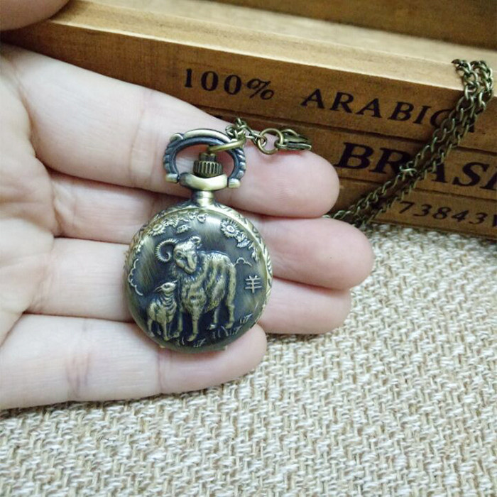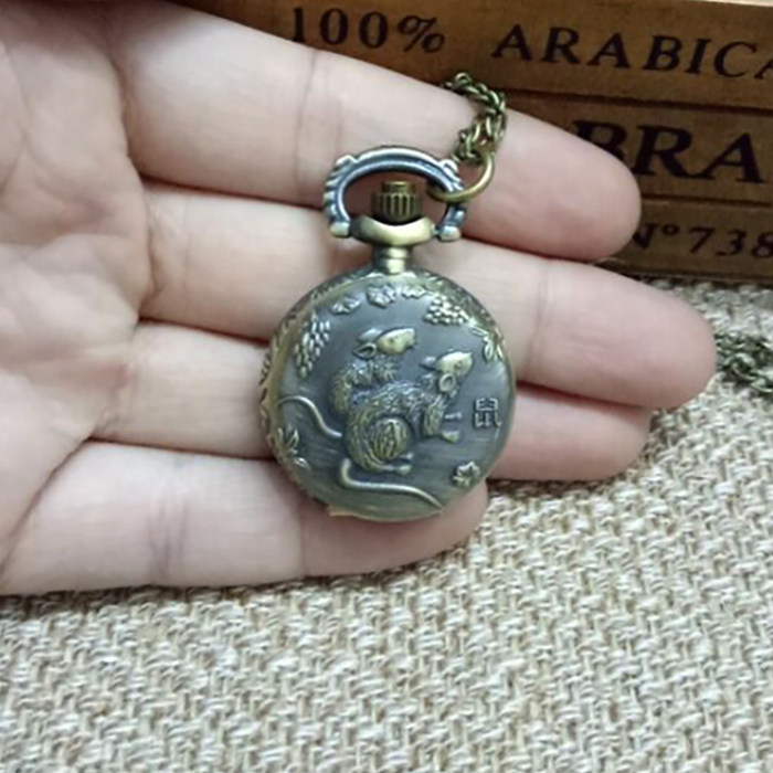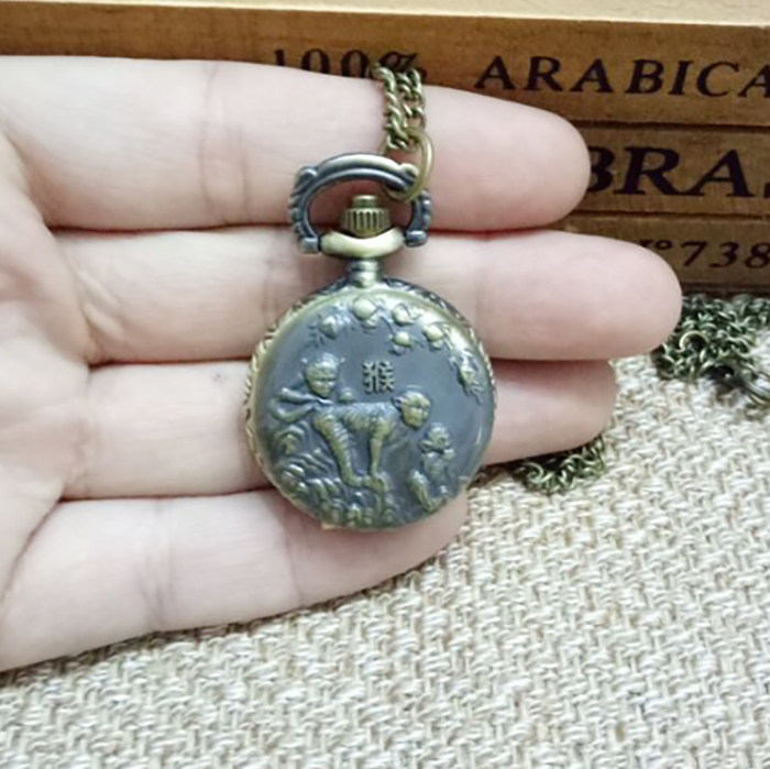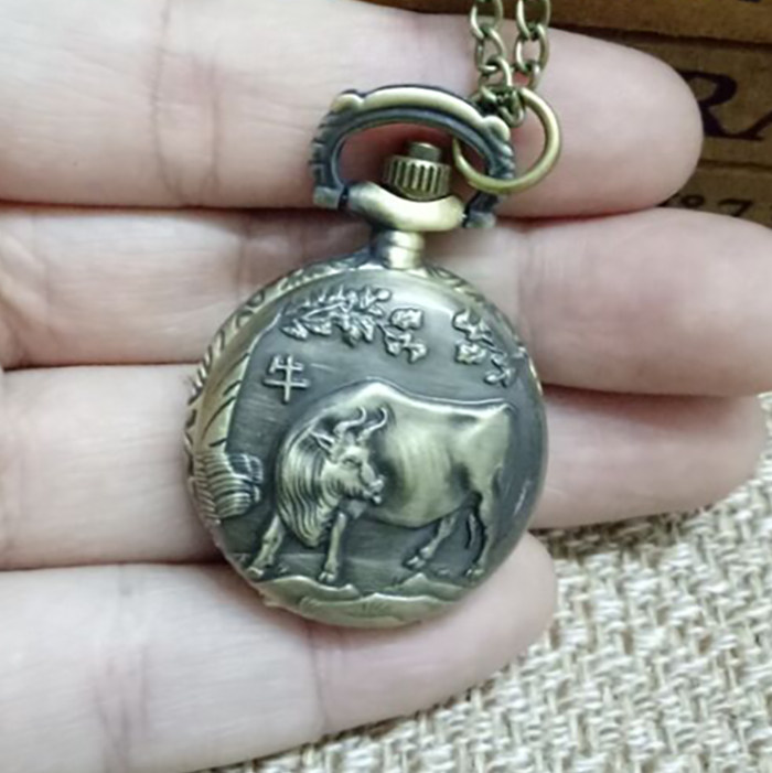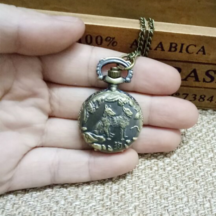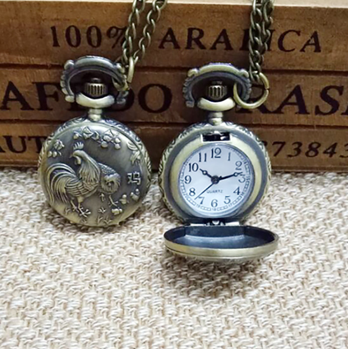 怀表 复古 翻盖 小号十二生肖男 女 项链挂表 学生儿童通用石英表