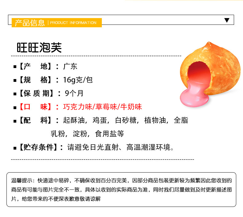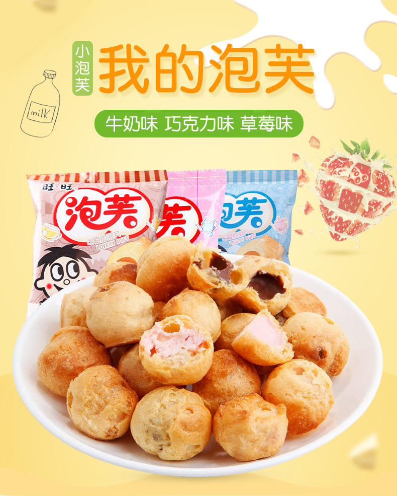 Wangwang Puffs Chocolate Milk Strawberry Flavor Filled Whole Box Puffed Snacks Leisure Snacks Children's New Year Snacks
