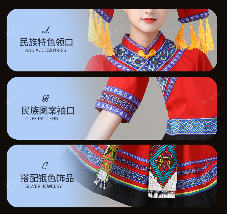 Sie entwirft ethnische Minderheitenkostüme für Frauen, Minderheitenkostüme für Erwachsene, Chorkostüme, Tanzkostüme, Bühnenlieder- und Tanzaufführungskostüme