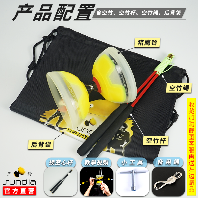 Campana de halcón de diábolo Sanzu de Taiwán para principiantes, estudiantes, niños y ancianos, monopolio de campana de doble cabeza de fitness con poste agitador de cinco ejes
