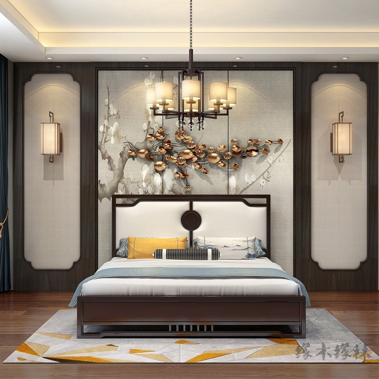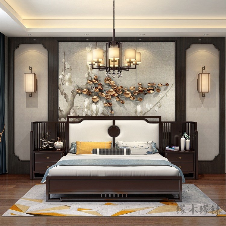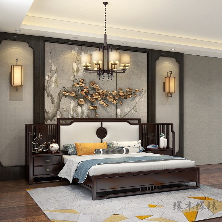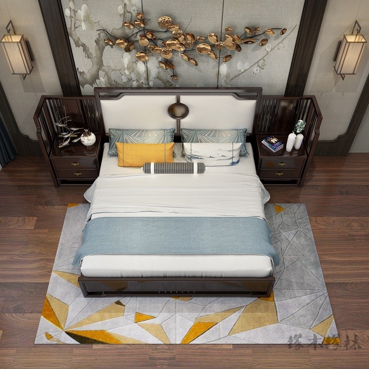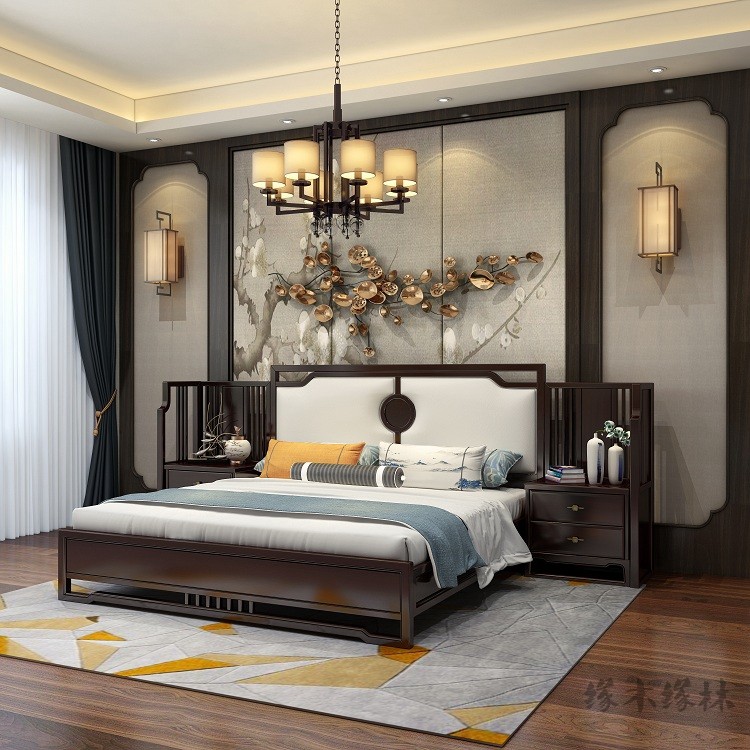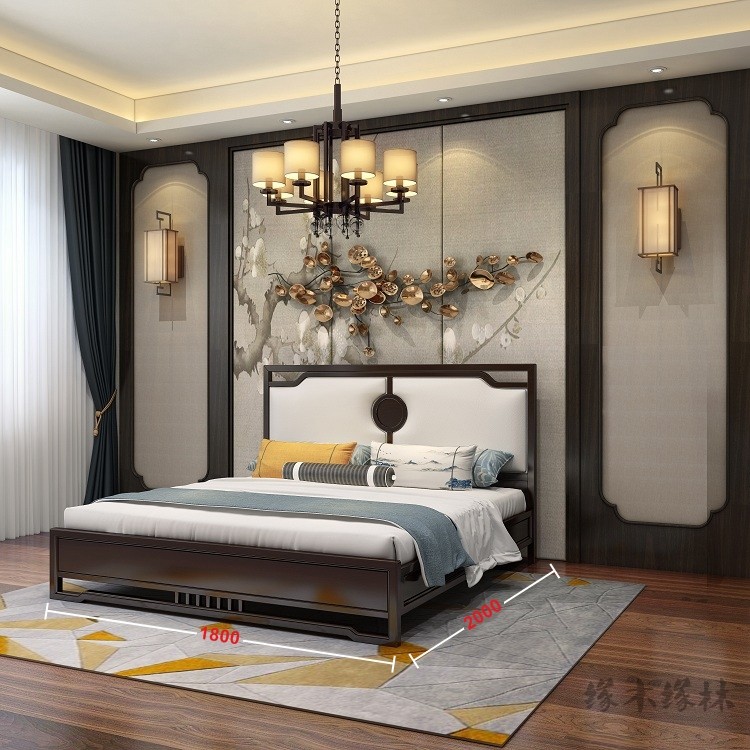 Новая кровать из массива дерева в китайском стиле, простая двуспальная кровать для главной спальни, 1.95m двуспальные кровати, гостиничный люк, мягкая мебель, прямые продажи с фабрики