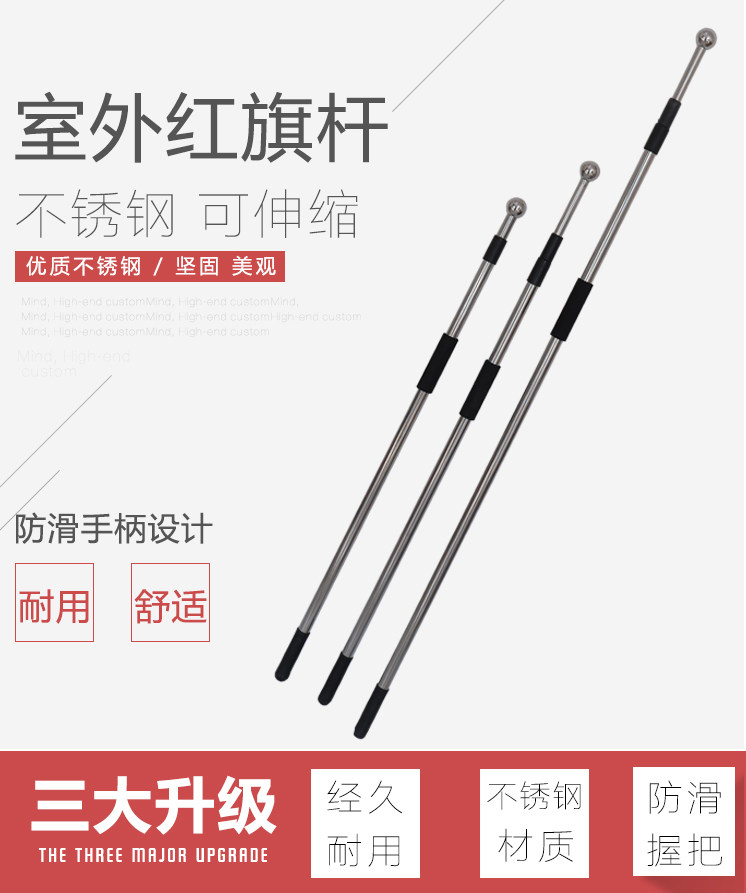 Stainless Steel Telescopic Flagpole Handheld 2.3m 4m Hand-Cranked Flagpole Outdoor Red Flagpole with No. 3, No. 4, No. 5 Flags