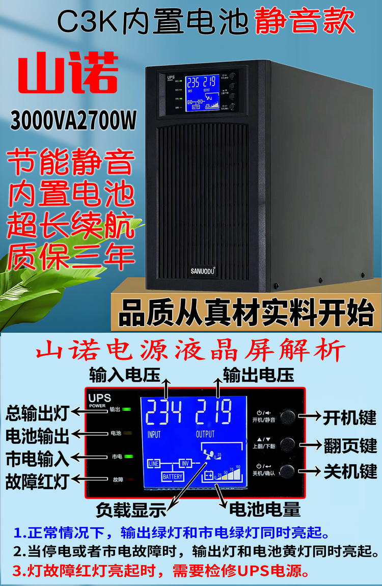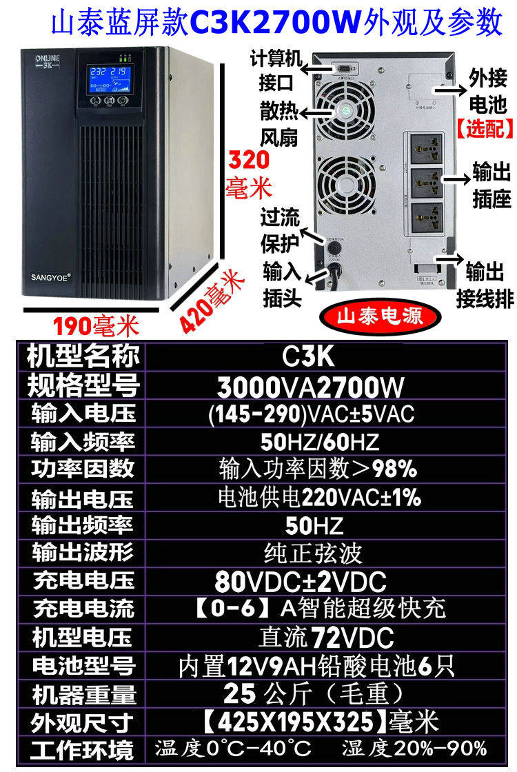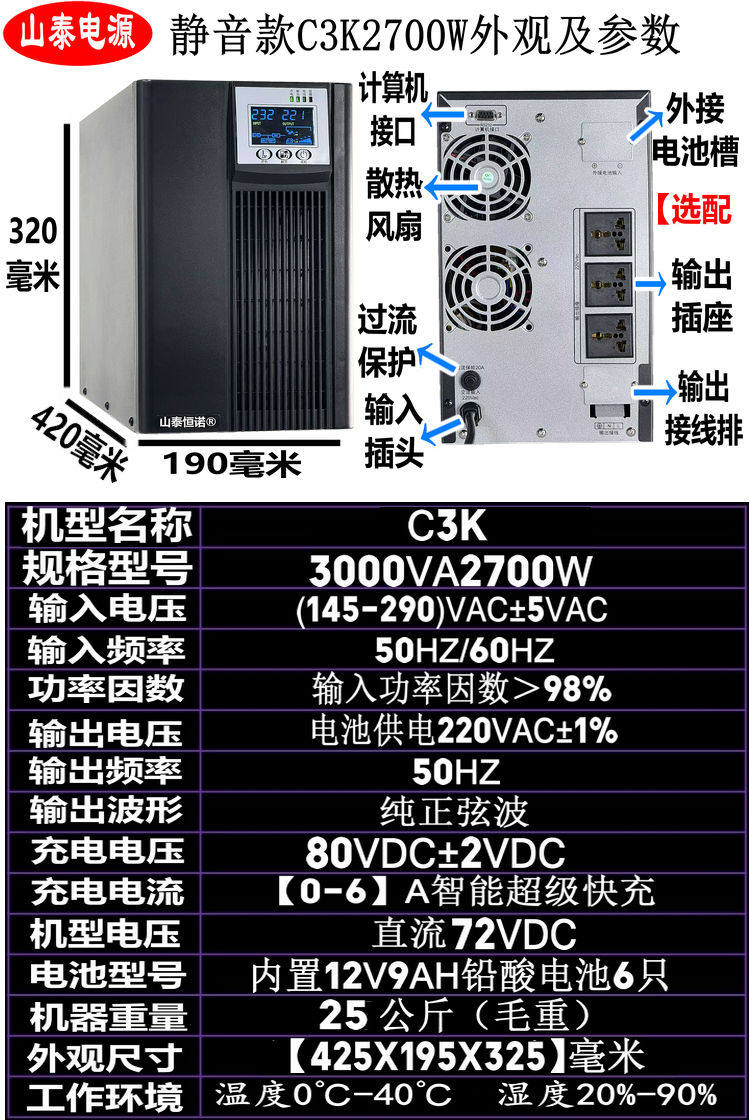 Shantai USV unterbrechungsfreie Stromversorgung C3K online 3KVA2700w Computer-Server-Überwachung Raum Spannungsstabilisierung 220