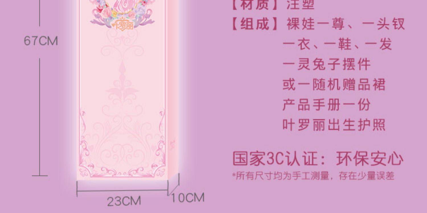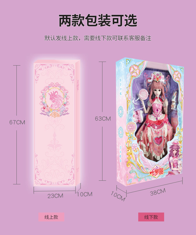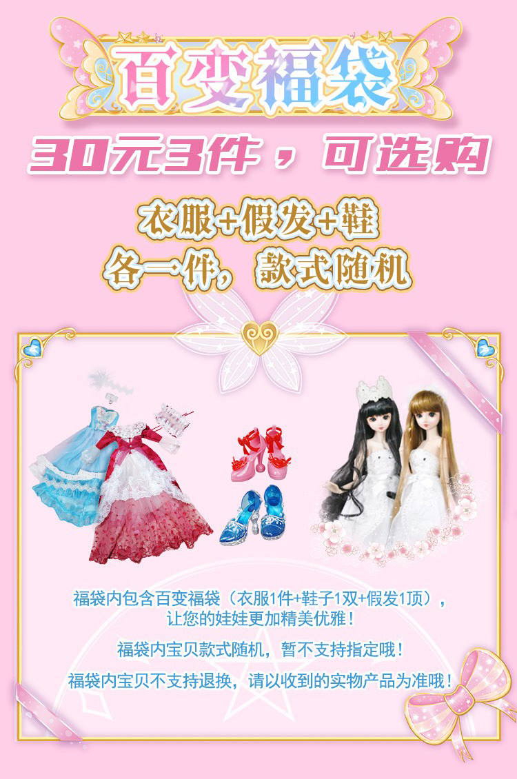 высота Официальная стандартная конфигурация = кукла,Подарочная упаковка = кукла + подарочная упаковка из шести предметов.,Пакет «Одевание» = кукла + постоянно меняющаяся счастливая сумка.,Полный пакет = кукла + постоянно меняющийся счастливый мешочек + подарочный мешочек из шести предметов.