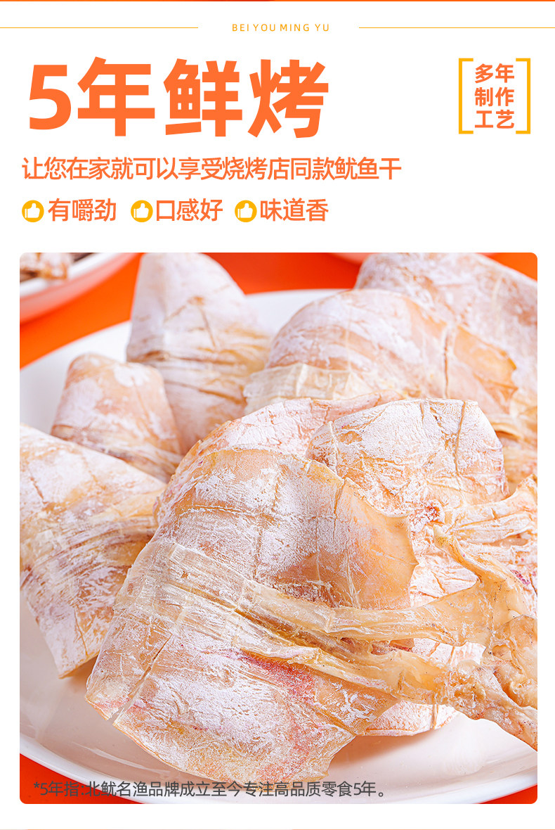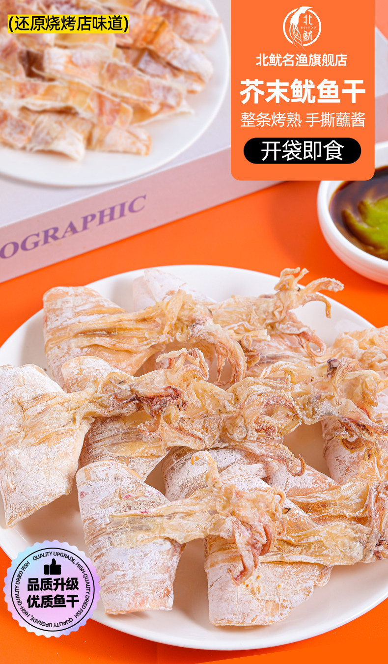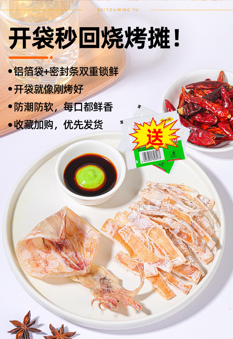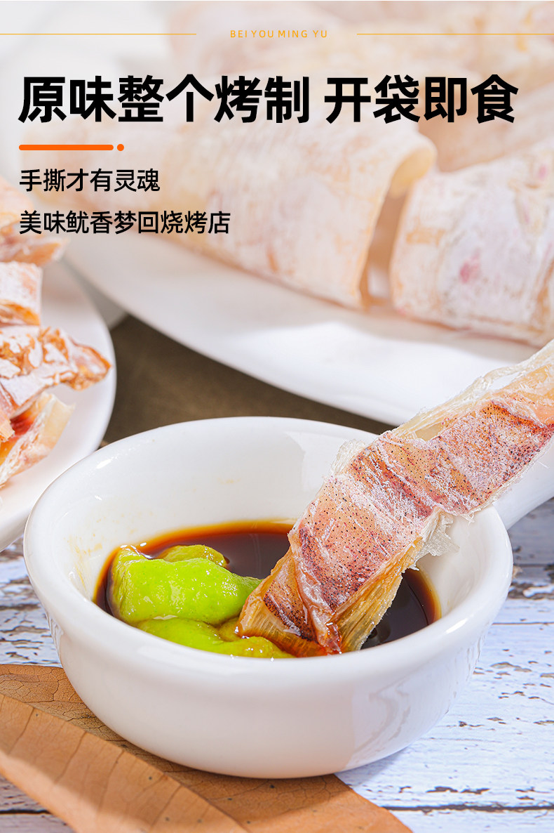 开袋即食烤鱿鱼干货碳烧北鱿名渔鱿鱼丝下酒菜小吃零食芥末尤手撕