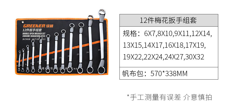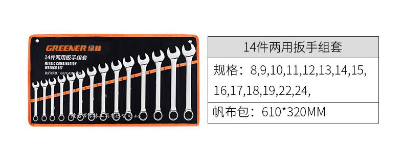 Juego de Herramientas de llave de flor de ciruelo de bosque verde, llave completa de doble propósito, 10 placas, trinquete 1314, llave de extremo abierto, doble cabeza