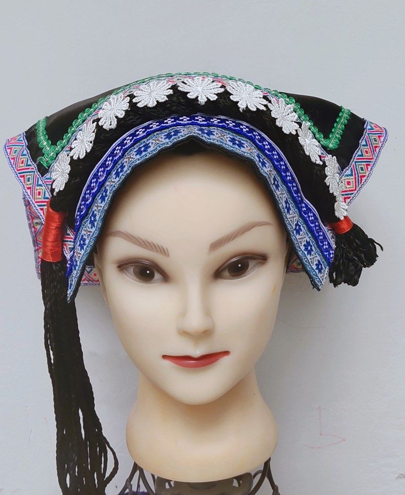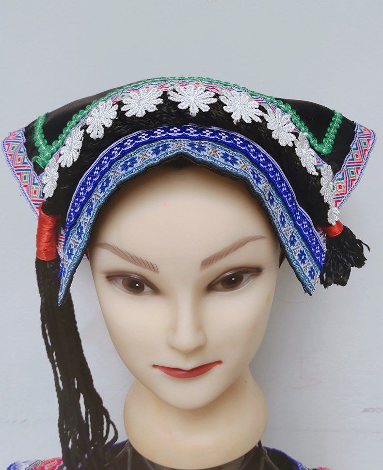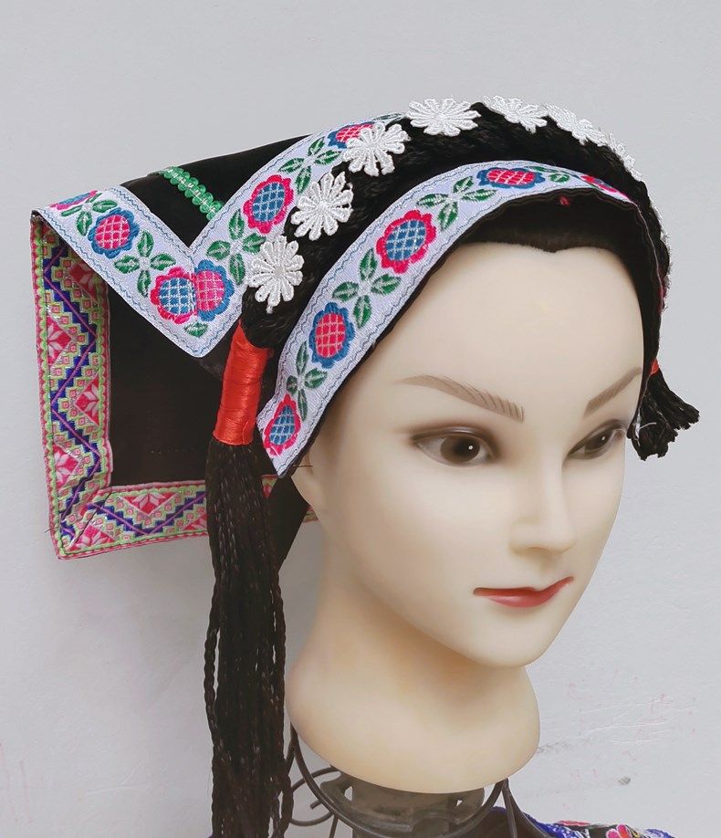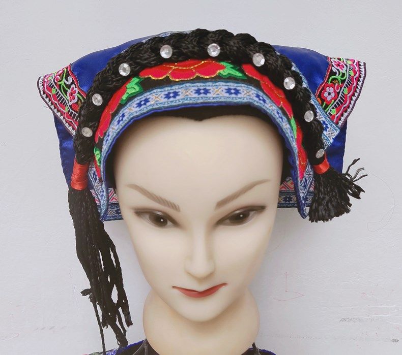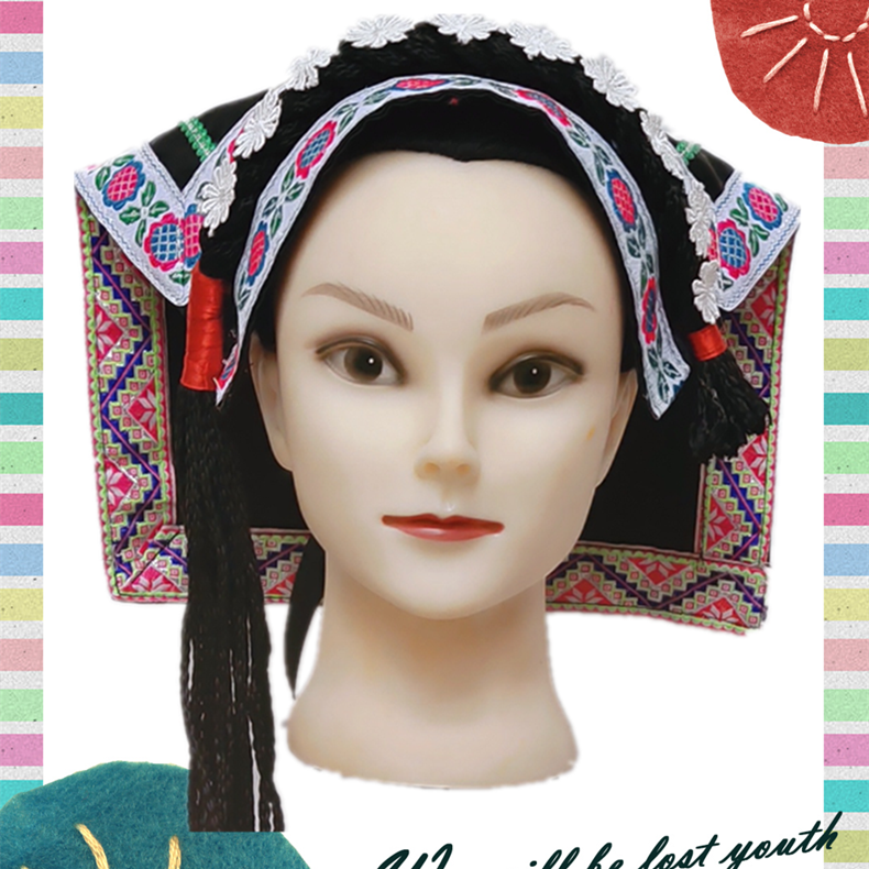 Embroidered Yi Costume Headdress Xiangxi Miao Head Pa Tujia Performance Costume Accessories Bu Yi Headscarf Yi Women