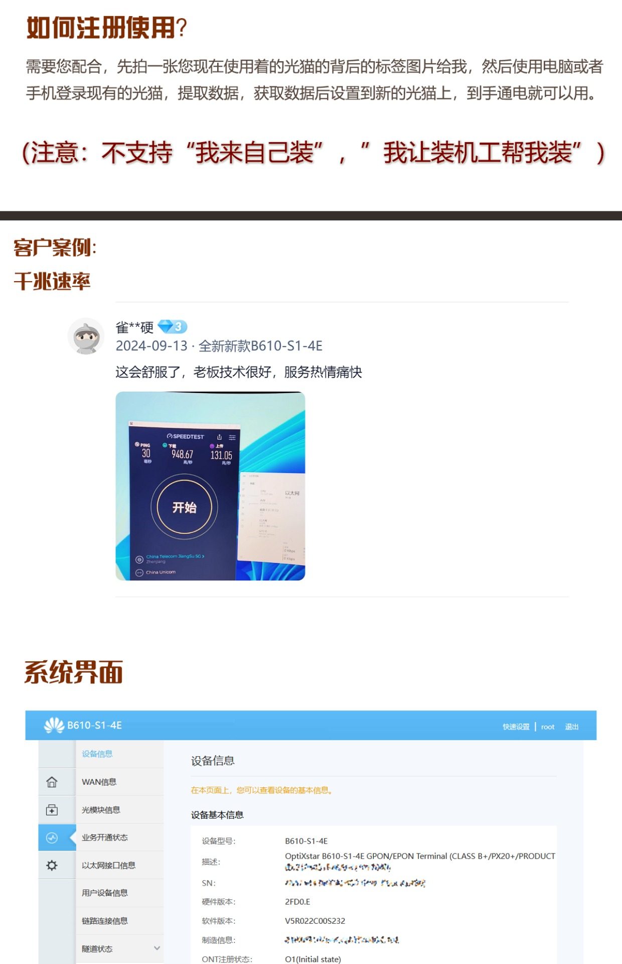 全新华为B610企业级电信移动联通光猫千兆网口GPON/EPON家用光猫