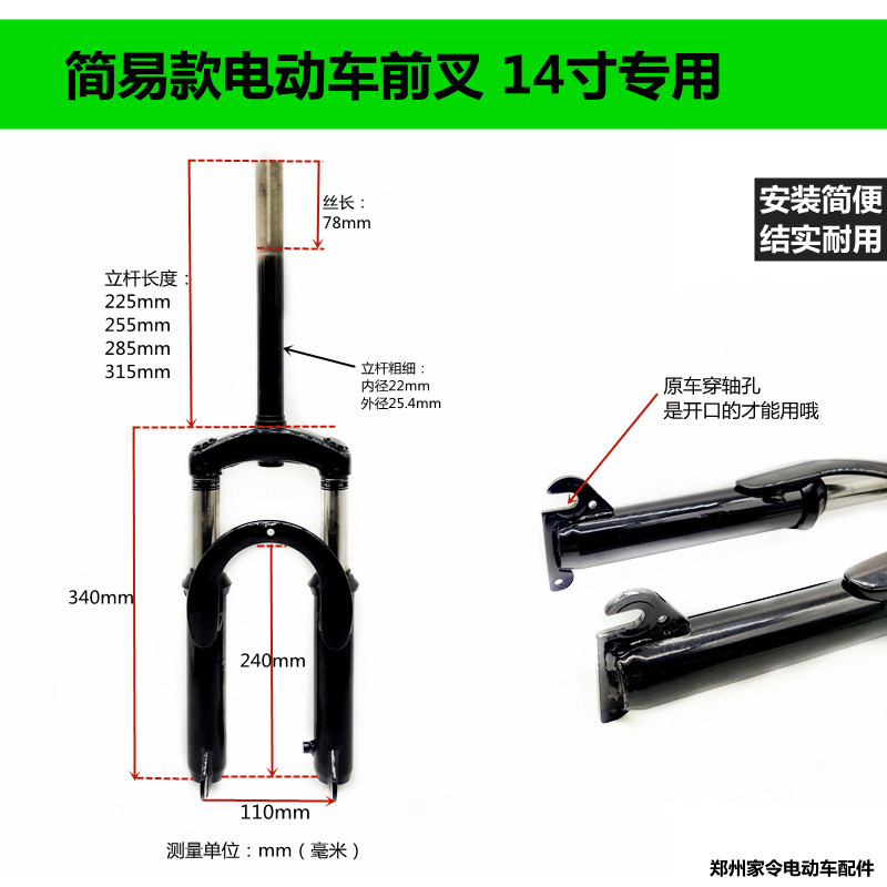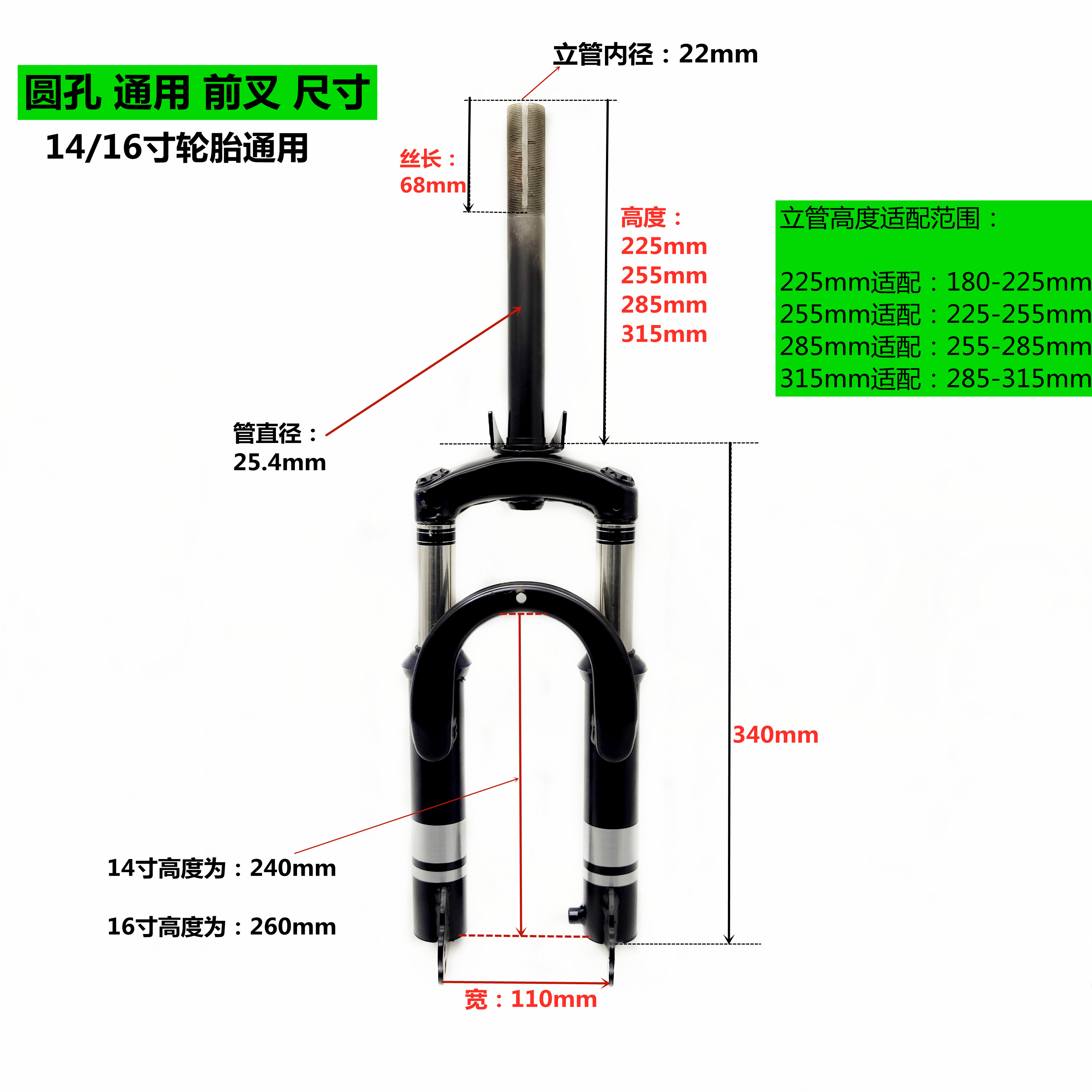 Простая передняя вилка для электромобиля, передний амортизатор для электромобиля, кронштейн переднего колеса, универсальный передний амортизатор 14/ 16inch