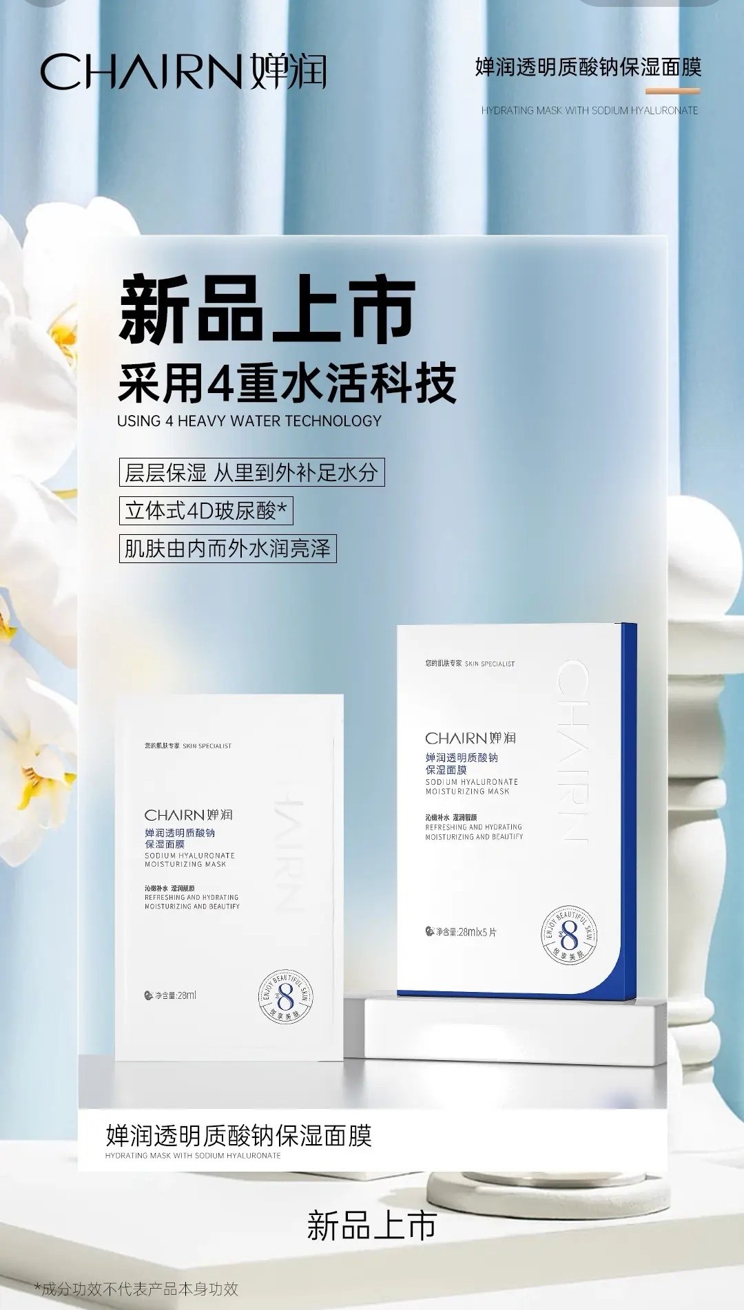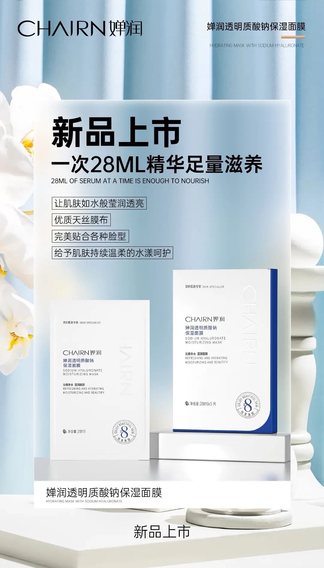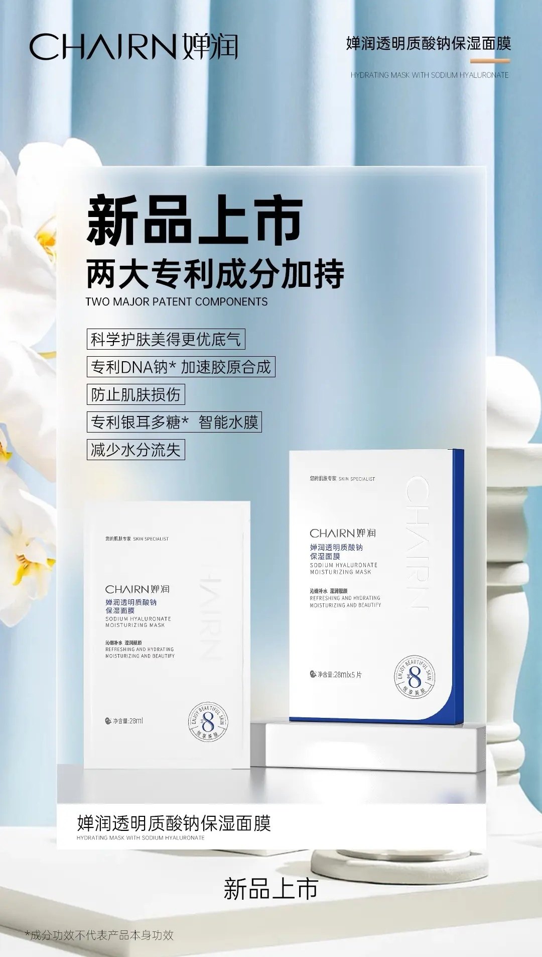 New Product Chanrun Sodium Hyaluronate Moisturizing Mask, Refreshing and Beautifying Skin, Hydrating, Soothing, Repairing, Firming and Brightening Skin Tone