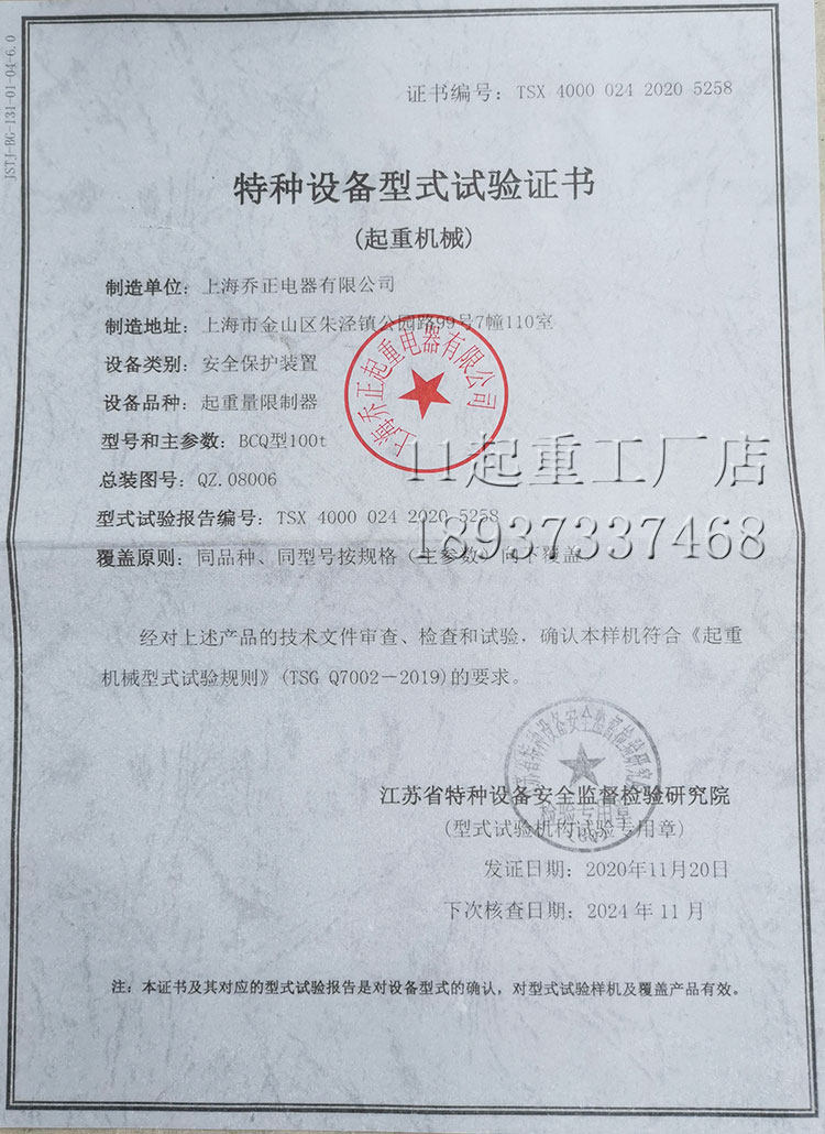 上海乔正超载限制器BCQ-M起重量限位器35T10吨电动葫芦行车限重器