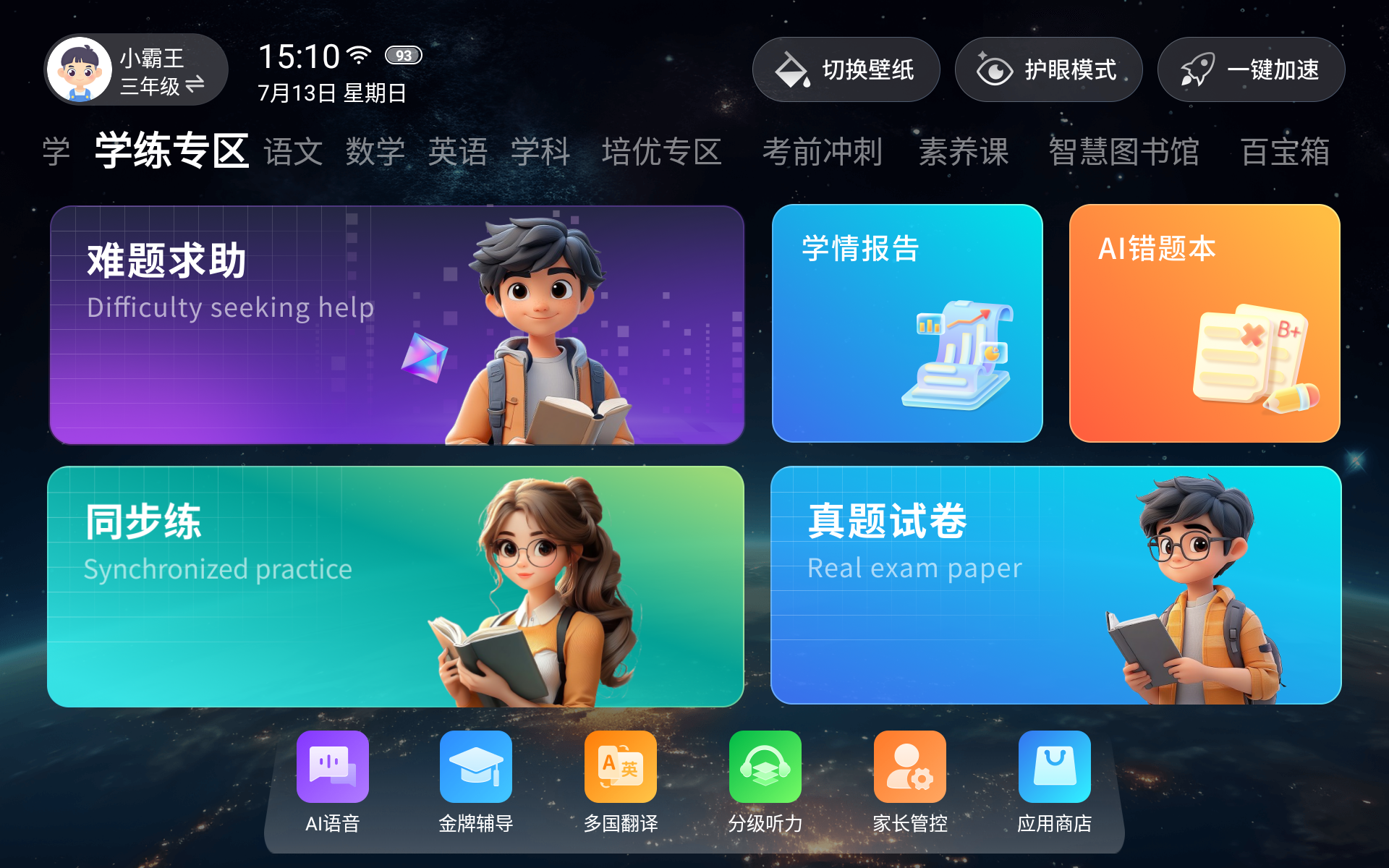 Parental Control Sitting Posture Monitoring,Combination Mode,Self-Study Statistics,Answer Locked,Internet Access Control,Content Filtering,Parental Mobile App,Application Download Restrictions,Take Regular Breaks,Parents Accompany Learning,Usage Statistics,Application Management,Account Switching,Personalized Reminder