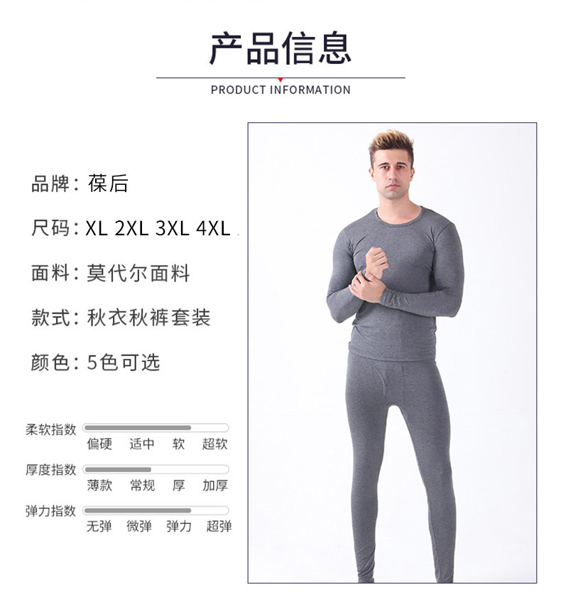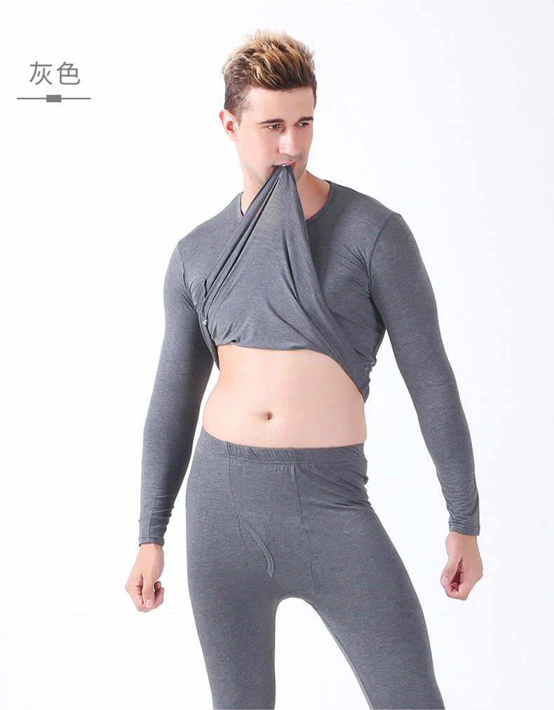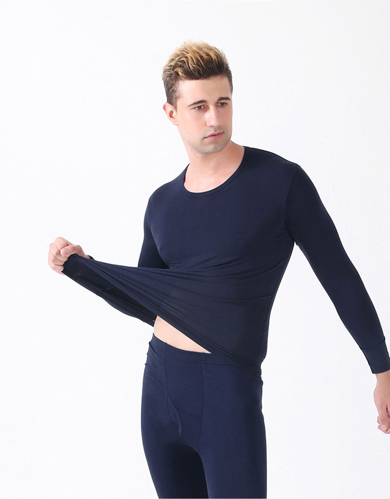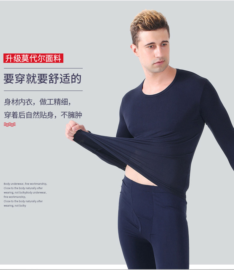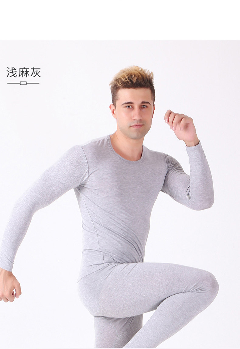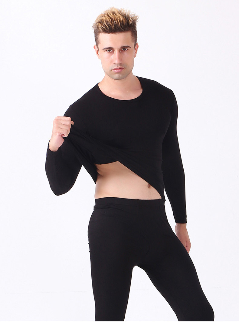 Мужской комплект тонкого термобелья из модала для осени и зимы, высокоэластичное свободное термобелье из хлопка с лайкрой.