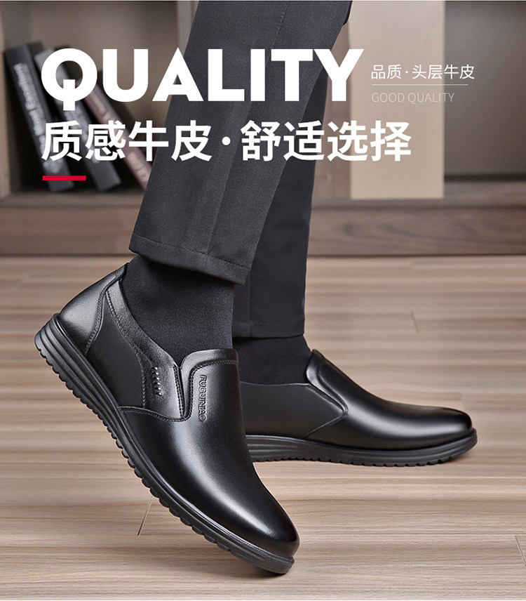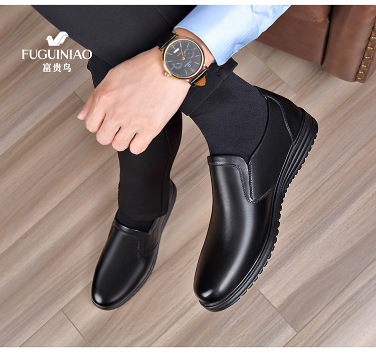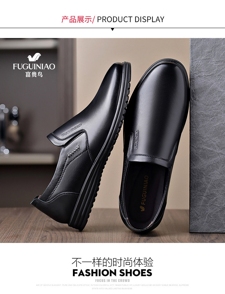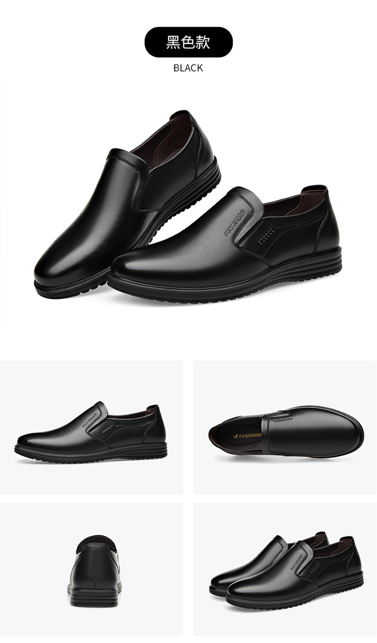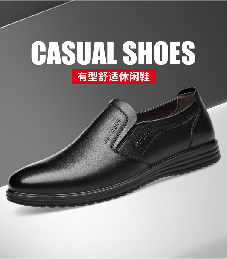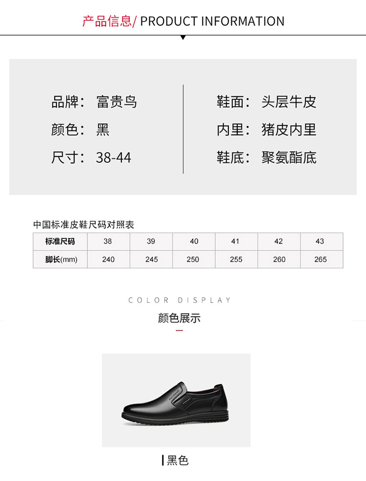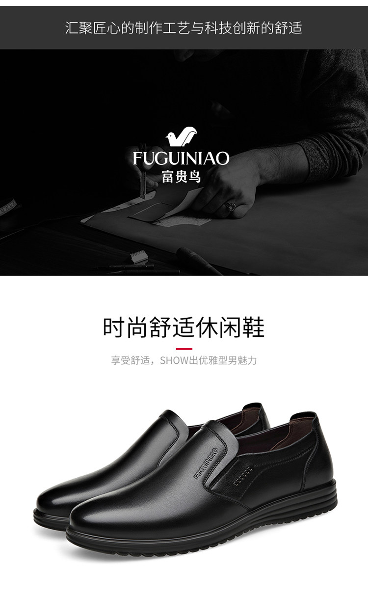 富贵鸟皮鞋男真皮商务休闲男鞋2022新款春秋季软皮黑色低帮结婚鞋