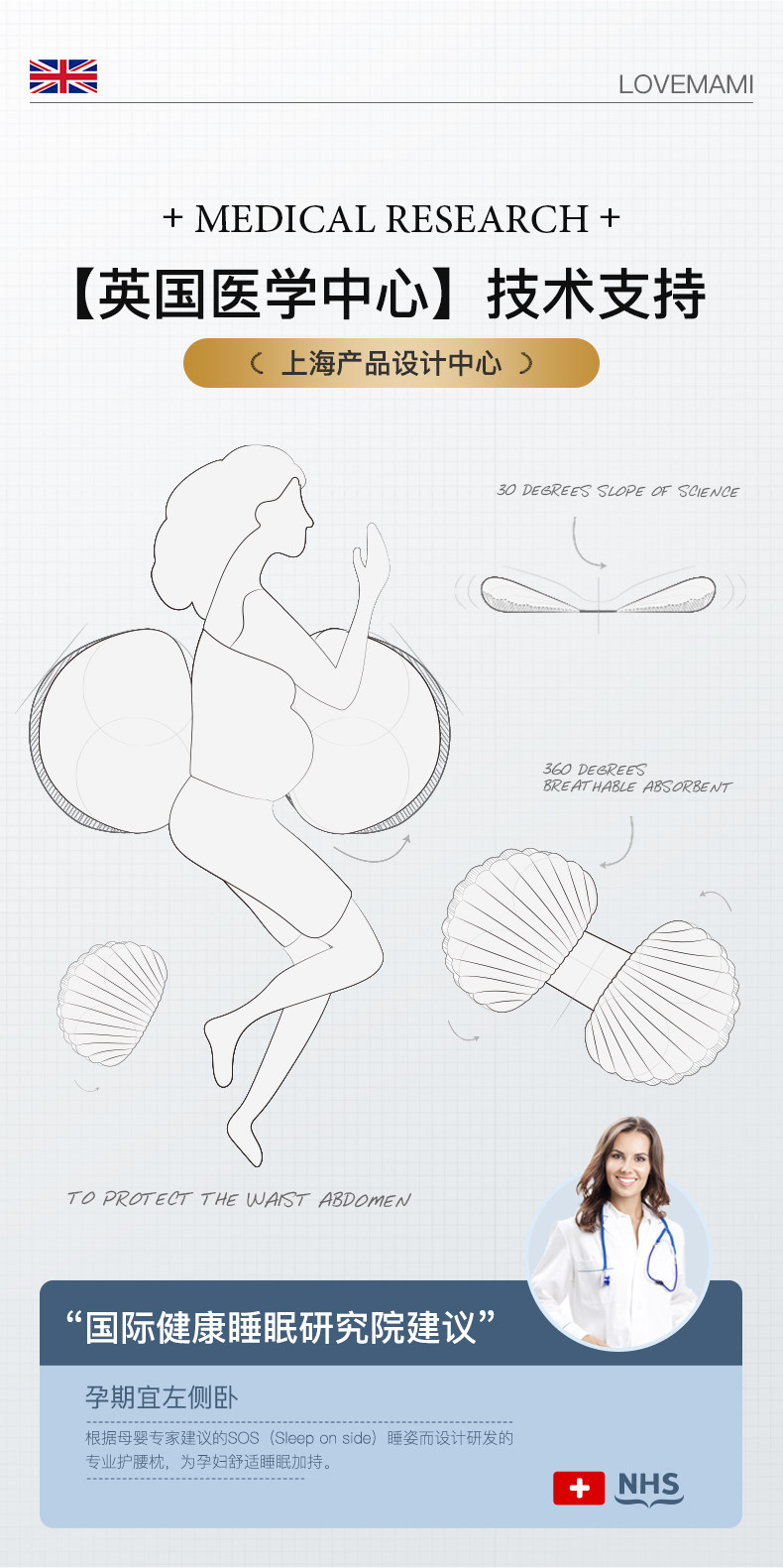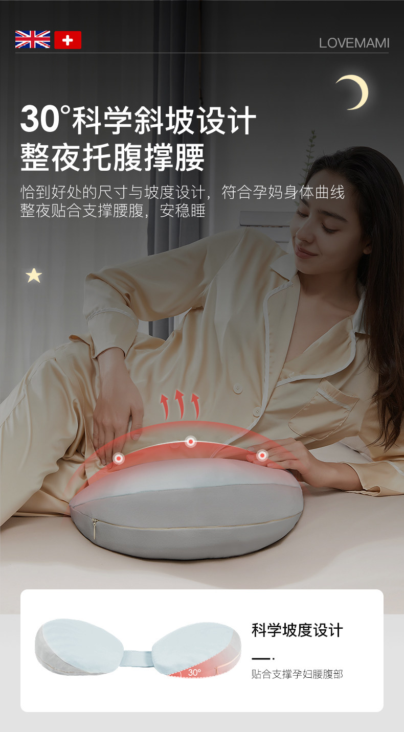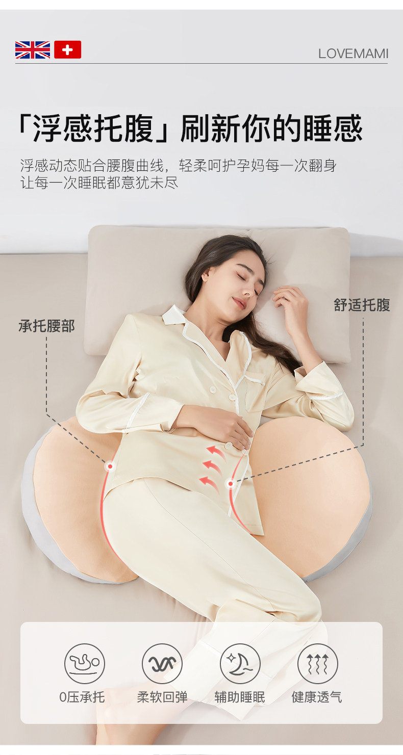 Almohada de maternidad británica lovemami de rebote lento, soporte para la cintura, almohada para dormir de lado, soporte para el vientre, suministros para dormir para mujeres embarazadas, almohada de cintura para dormir de lado