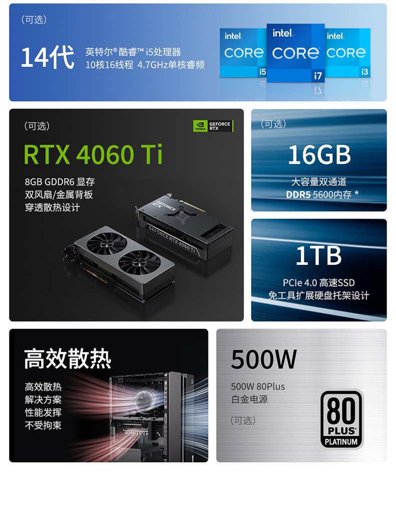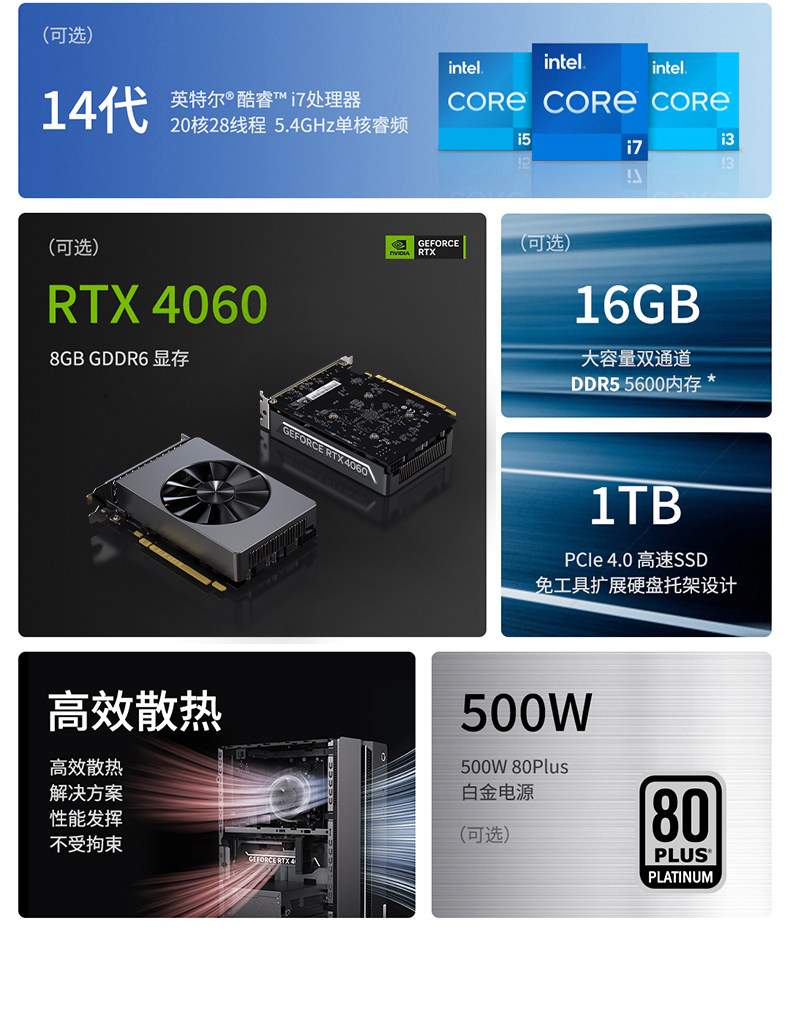 Sort by color A1 model i5-14400F/16G memory/512G solid state/GT730-4G independent graphics,A3 model i5-14400F/16G memory/1TB solid state/GT730-4G independent graphics,A4 model i5-14400F/32GB/1TB solid state/GT730-4G independent graphics,A5 model i5-14400F/16G/1TB solid state/GTX1650-4G independent graphics,A6 model i5-14400F/32G memory/1TB solid state/GTX1650-4G independent graphics,B1 model i5-14400F/16GB/512G solid state/RX6600LE-8G independent graphics,B2 model i5-14400F/16G memory/1TB solid state/RX6600LE-8G independent graphics,B3 model i5-14400F/32G memory/1TB solid state/RX6600LE-8G independent graphics,B4 model i5-14400F/16G/1TB solid state/RX7600-8G independent graphics,B5 model i5-14400F/32GB/1TB solid state/RX7600-8G independent graphics,B6 model i5-14400F/16G/512G solid state/RTX3050-6G independent graphics,B7 model i5-14400F/16G memory/1T solid state/RTX3050-6G independent display,B8 model i5-14400F/32G/1TB solid state/RTX3050-6G independent graphics,D1 model i5-14400F/16GB memory/1T solid state/RTX5060-8G independent display,D2 model i5-14400F/32GB memory/1TB solid state/RTX5060-8G independent display,D3 model i5-14400F/32G/2T mechanical + 1TB solid state/RTX5060-8G independent display,D5 model i5-14400F/16G memory/1T solid state/RTX4060Ti-8G independent graphics,D6 model i5-14400F/32G/1TB solid state/RTX4060Ti-8G independent graphics,D7 model i5-14400F/32G/2T mechanical + 1T solid state/RTX4060Ti-8G independent,F1 model i7-14700F/16G/1TB solid state/GT730-4G independent graphics,F2 model i7-14700F/16G/1TB solid state/GTX1650-4G independent graphics,F3 model i7-14700F/32G memory/1TB solid state/GTX1650-4G independent graphics,F4 i7-14700F/16G/1TB solid state/RTX3050-6G independent graphics,F5 i7-14700F/32G memory/1TB solid state/RTX3050-6G independent graphics,G1 model i7-14700F/16G/1TB solid state/RTX5060-8G independent graphics,G2 model i7-14700F/32G/1T solid state/RTX5060-8G independent graphics,G3 model i7-14700F/32G/2TB mechanical + 1TB solid state/RTX5060-8G independent display,G4 model i7-14700F/64G/2T mechanical + 1TB solid state/RTX5060-8G independent display,H1 model i7-14700F/16G/1TB solid state/RTX4060Ti-8G independent graphics,H2 model i7-14700F/32G memory/1T solid state/RTX4060Ti-8G independent graphics,H3 model i7-14700F/32G/2TB mechanical + 1T solid state/RTX4060Ti-8G independent display,C1 model i7-14700/32GB/1TB solid state/RTX5060Ti-8G independent graphics,C1 model i7-14700/32G/1TB solid state/RTX5060Ti-8G independent graphics,C2 model i7-14700/32G/2T mechanical + 1T solid state/RTX5060Ti-8G independent display,C3 model i7-14700/64GB memory/2TB solid state/RTX5060Ti-8G independent graphics,K1 model U7-255HX/24G/1TB solid state/RTX5060Ti-8G independent graphics,K2 model U7-255HX/24G memory/2T solid state/RTX5060Ti-8G independent graphics,K3 model U9-275HX/32GB/1T solid state/RTX5060Ti-8G independent graphics,K4 model U9-275HX/32GB/2T solid state/RTX5060Ti-8G independent graphics,K3 model U9-275HX,K4 model U9-275HX,A6 model i5-14400F,D2 model i5-14400F/32GB memory/1T solid state/RTX5060-8G independent display,2025 new product K5 model U9-275HX/32G/1TB solid state/RTX5060Ti-16G independent graphics,2025 new product K6 model U9-275HX/32G/2TB solid state/RTX5060Ti-16G independent graphics