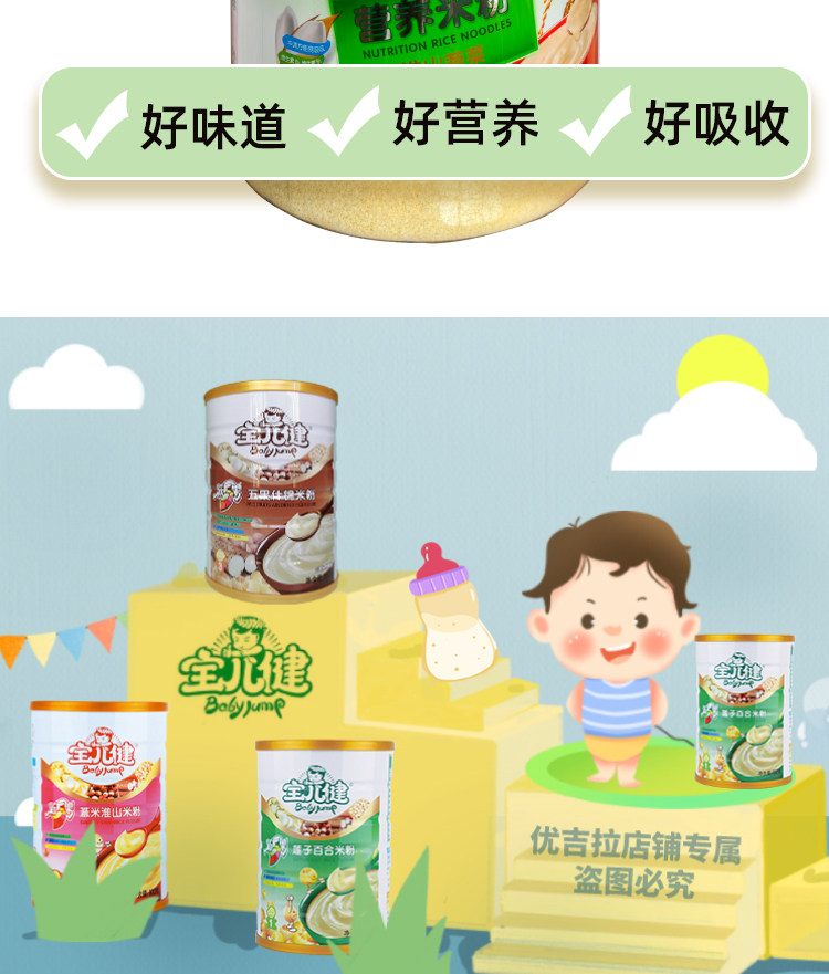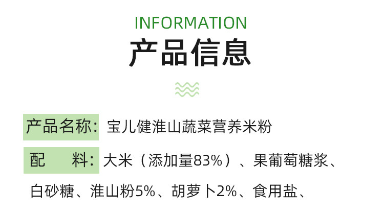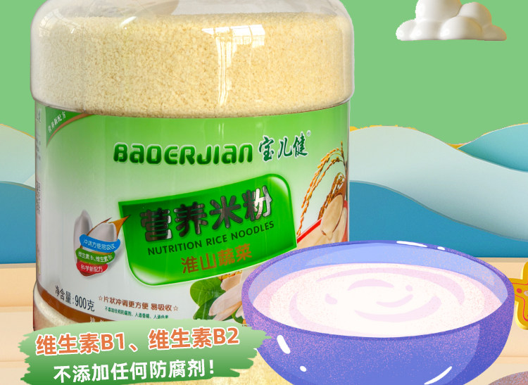 正品宝儿健淮山蔬菜营养米粉900g罐装营养米糊片状大米粉辅食代餐