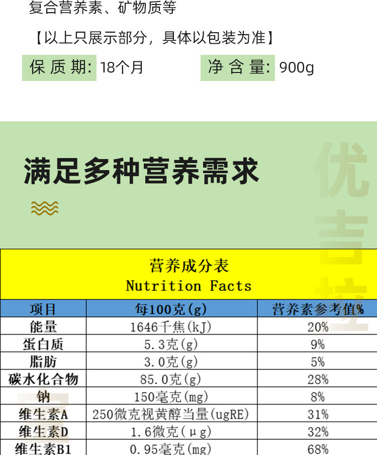 口味 淮山蔬菜900g(一罐),中老年无添加蔗糖米粉900g