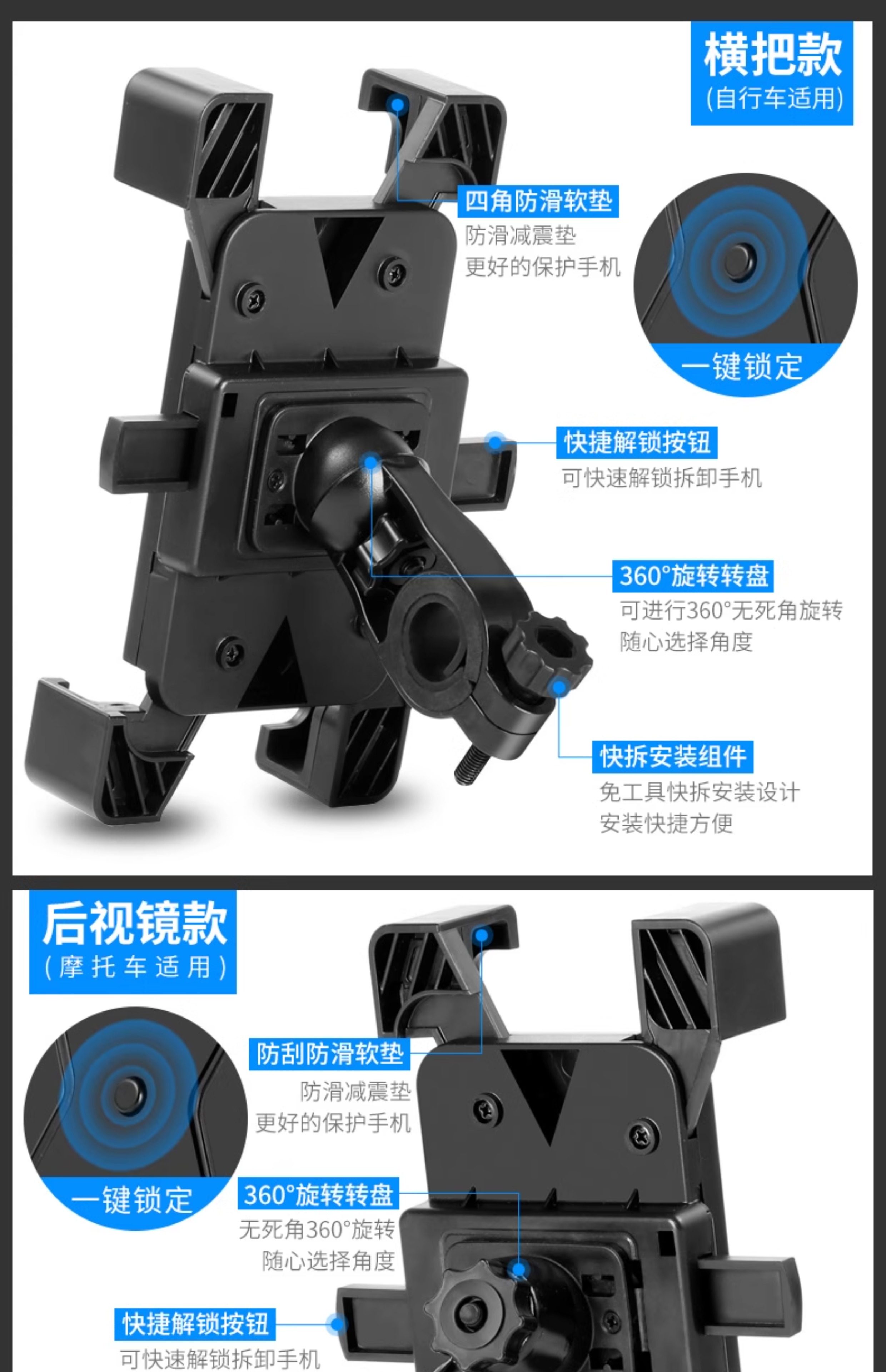 颜色分类 ✅骑行0抖动【镜座】麒麟夹臂 360°防震/全能ABS材质抗震/四角锁死防抖 黑.,✅骑行0抖动【镜座】麒麟夹臂 360°防震/全能ABS材质抗震/四角锁死防抖 蓝,骑行0抖动【车把】加固底座/加厚胶垫/加大背板/抗震防抖.,骑行0抖动【镜座】加固底座/加厚胶垫/加大背板/抗震防抖,专利防抖【镜座】专利设计/合金材质/抗震防抖 黑.,专利防抖【镜座】专利设计/合金材质/抗震防抖 银,厚手机专用【车把】四角加宽/加厚胶垫/抗震防抖 黑白,厚手机专用【车把】四角加宽/加厚胶垫/抗震防抖 黑色,厚手机专用【车把】四角加宽/加厚胶垫/抗震防抖 黑黄,厚手机专用【镜座】四角加宽/加厚胶垫/抗震防抖 黑白,厚手机专用【镜座】四角加宽/加厚胶垫/抗震防抖 黑色,厚手机专用【镜座】四角加宽/加厚胶垫/抗震防抖 黑黄,四角稳固【车把】自动锁死/单手取放/抗抖防甩,四角稳固【镜座】自动锁死/单手取放/抗抖防甩,四角稳固【车把】一键锁死/单手取放/抗抖防甩,四角稳固【镜座】一键锁死/单手取放/抗抖防甩,✅骑行0抖动【车把】麒麟夹臂 360°防震/全能ABS材质抗震/四角锁死防抖 黑.,专利防抖【镜座】专利设计/合金材质/抗震防抖 黑,专利防抖【镜座】专利设计/合金材质/抗震防抖 黑..,✅骑行0抖动【车把】麒麟夹臂 360°防震/全能ABS材质抗震/四角锁死防抖 蓝,【360°防震】防震麒麟臂 骑行0抖动,【99%适配】不限车型 不限手机,【行业独家】下单送三千元碎屏险,【骑行无忧】15天免费安装试用