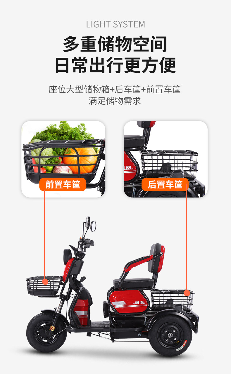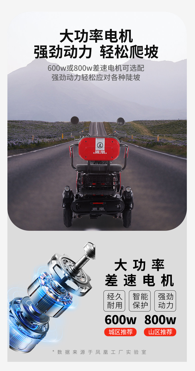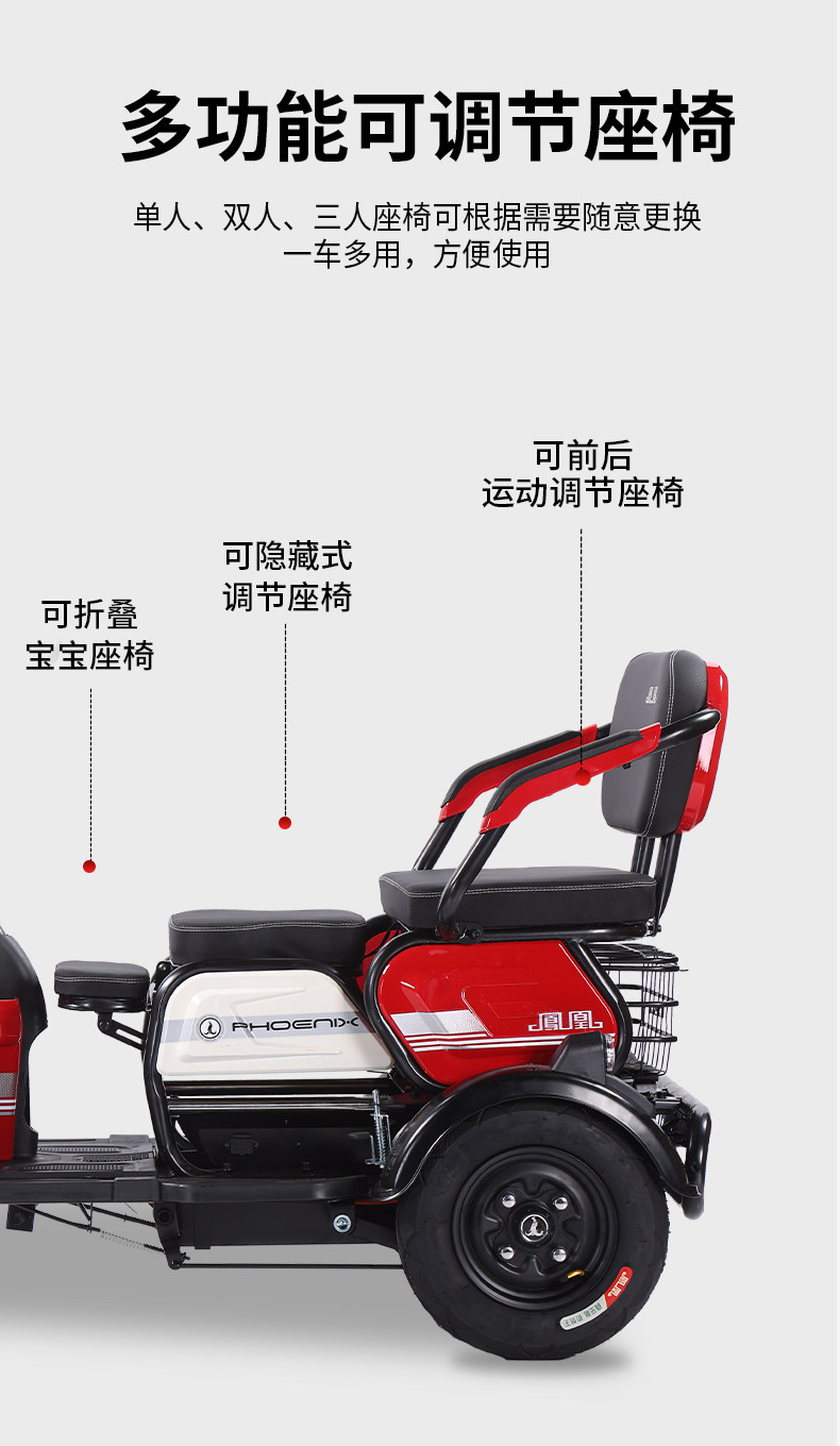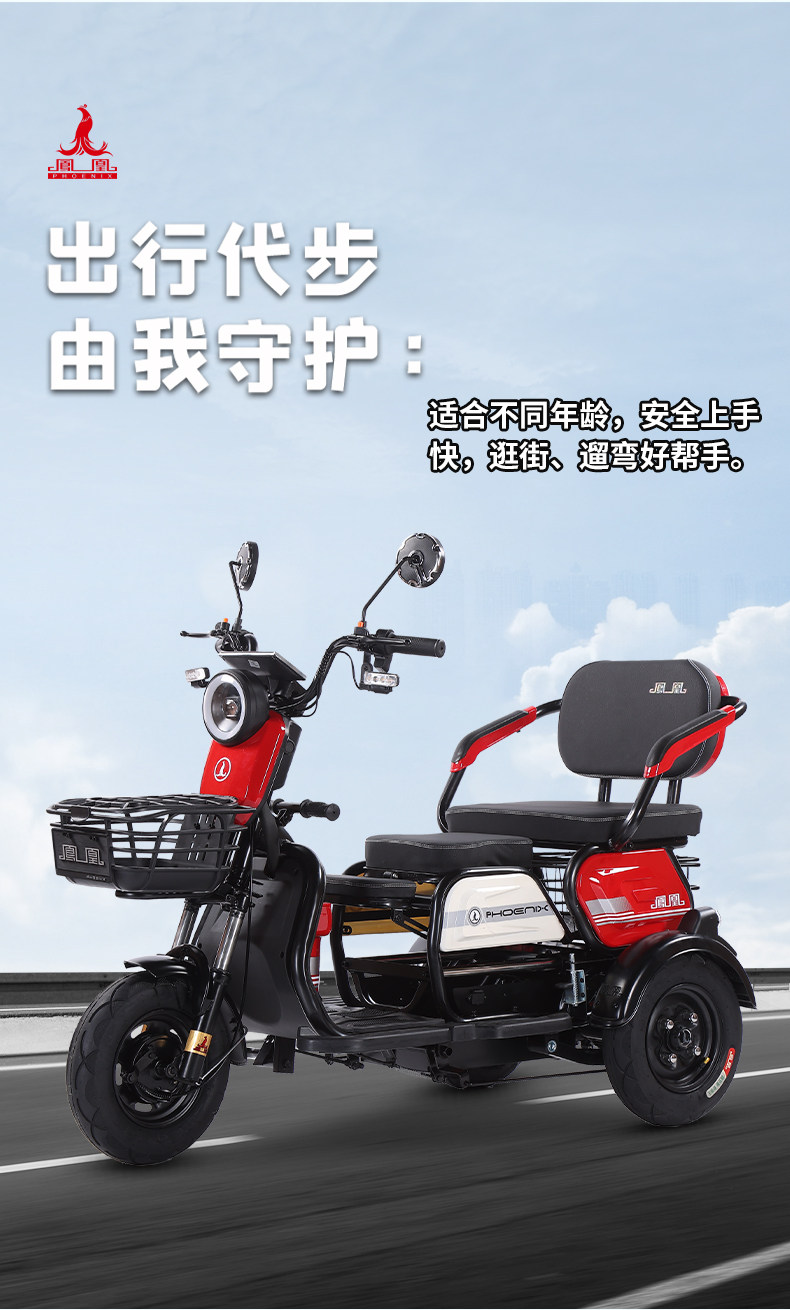 凤凰电动三轮车家用小型老人电动摩托车助力车带棚接送孩子电瓶车
