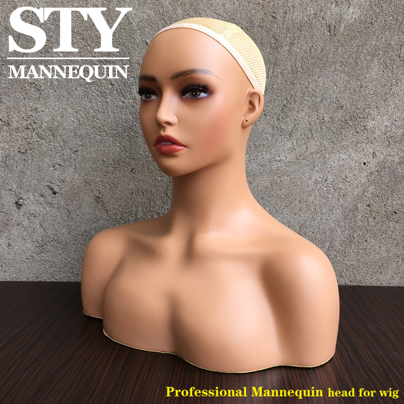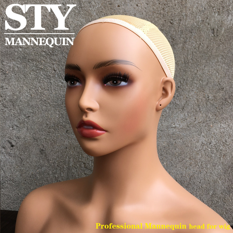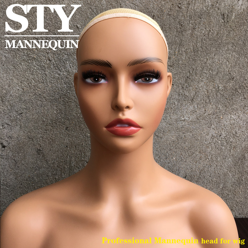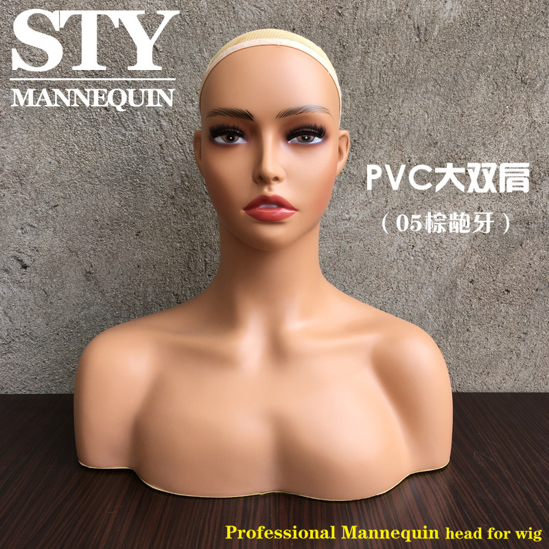 Манекен-голова женская в европейском и американском стиле, темнокожая, для фотосъемки, демонстрации париков, головных уборов и аксессуаров, с подставкой.