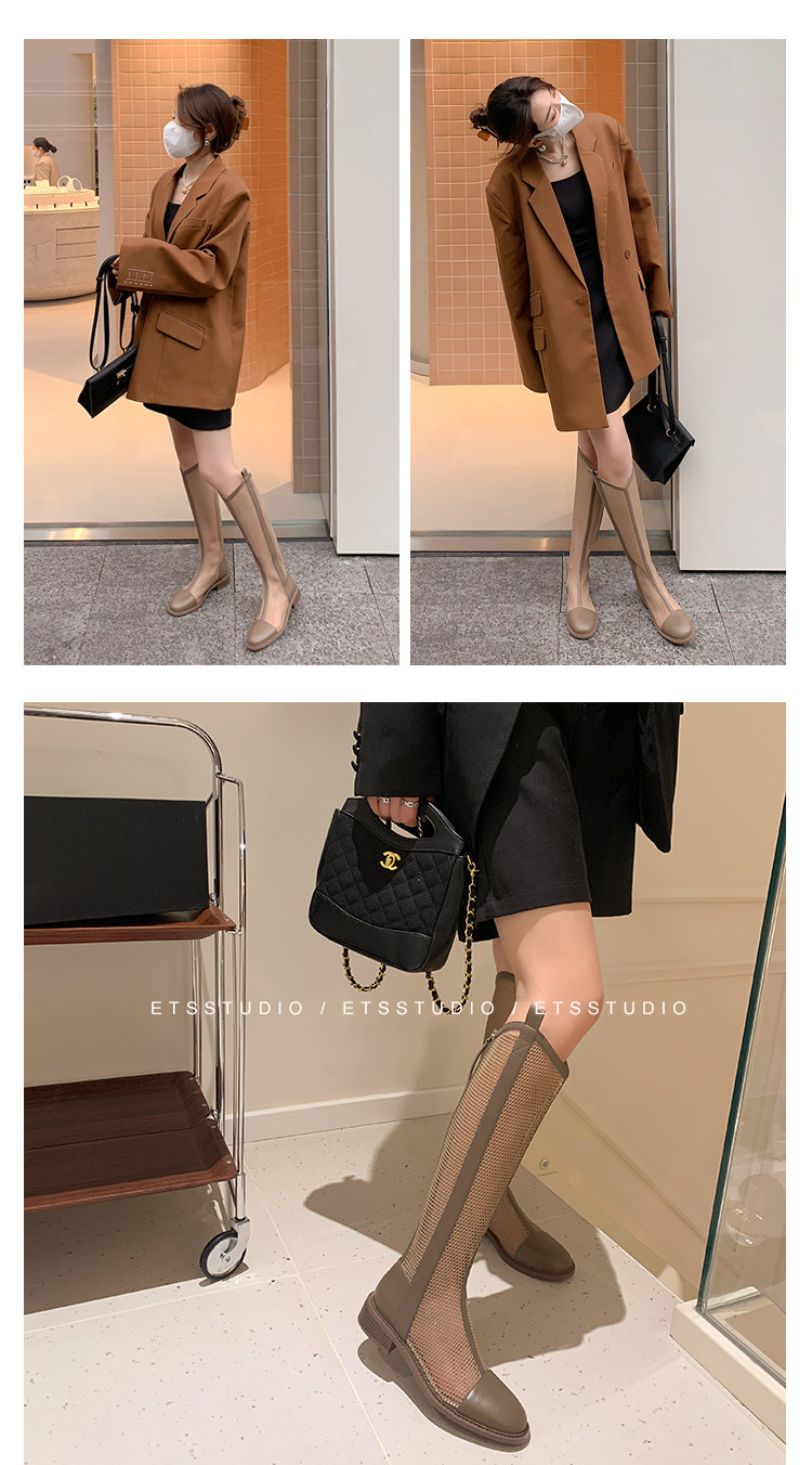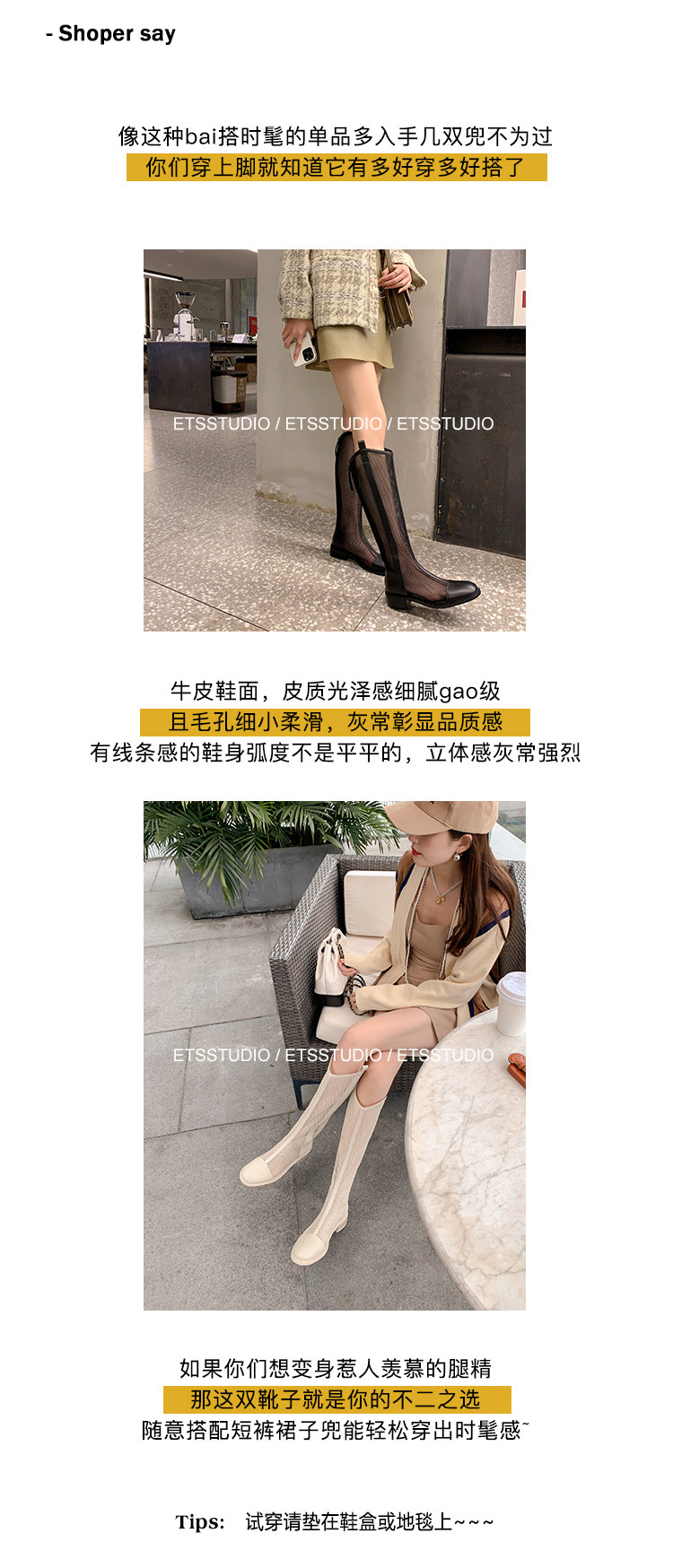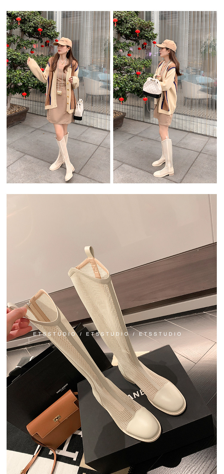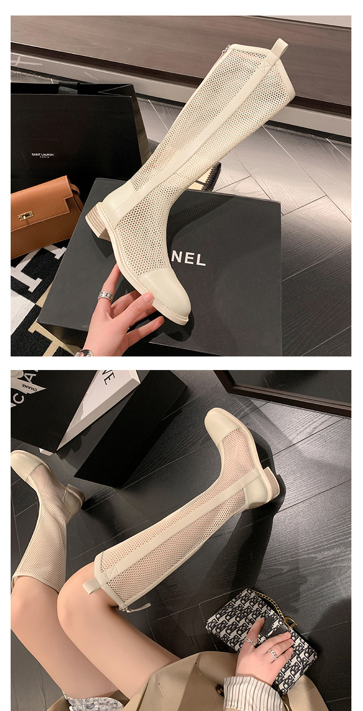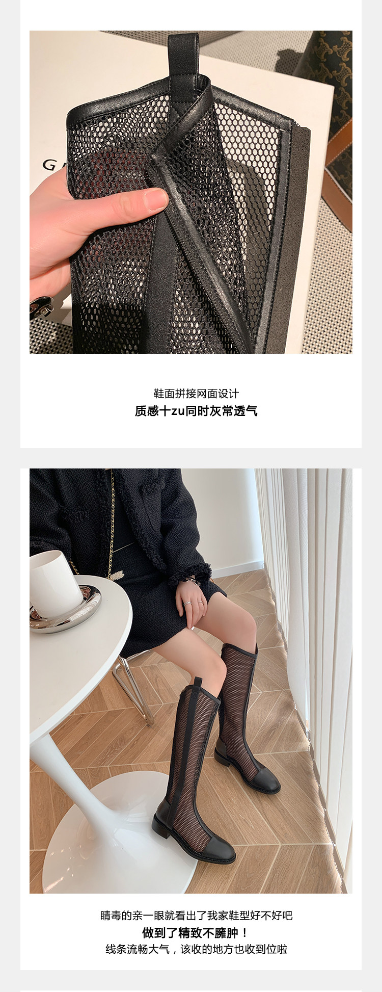 Высокие сапоги из натуральной кожи для женщин весной и летом, женские сапоги больших размеров, ботинки с полой сеткой, тонкие высокие сандалии с большой трубкой