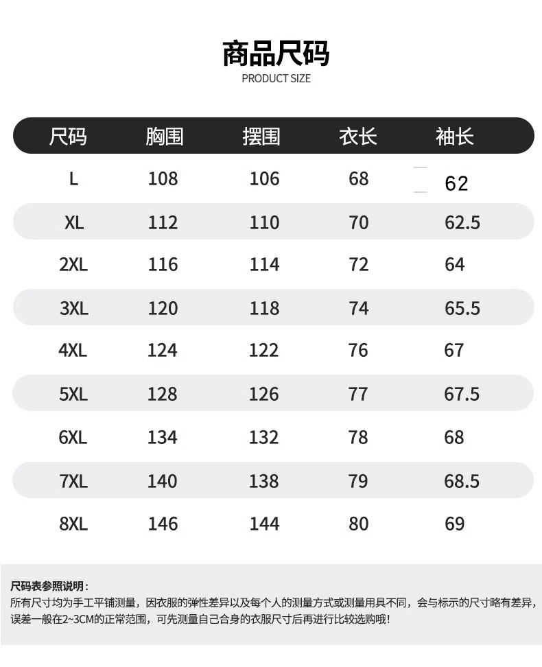 Size 3XL,2XL,XL,4XL,5XL,6XL,7XL,8XL