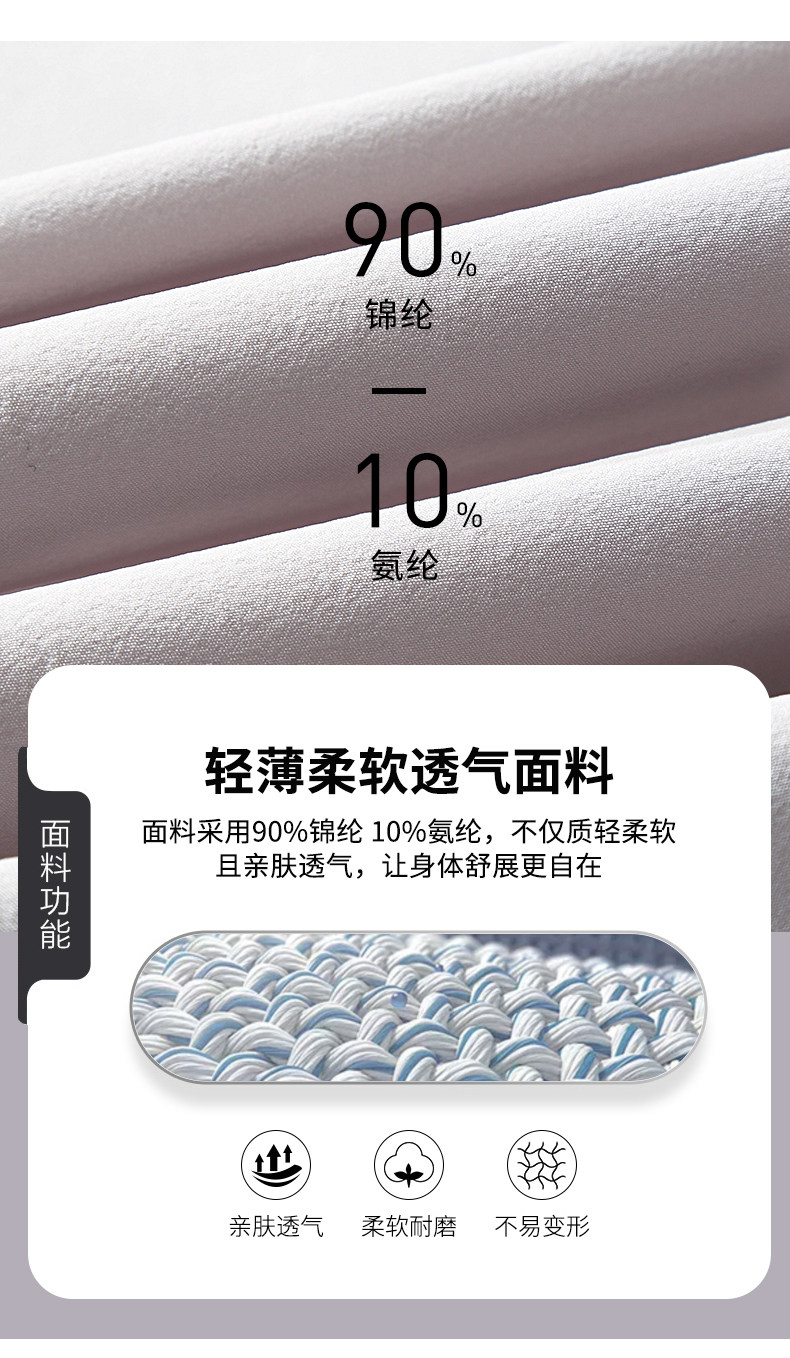 Material Composition Polyamide Fiber (Nylon) 90% Polyurethane Elastic Fiber (Spandex) 10%